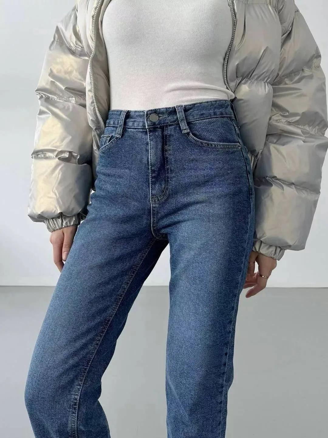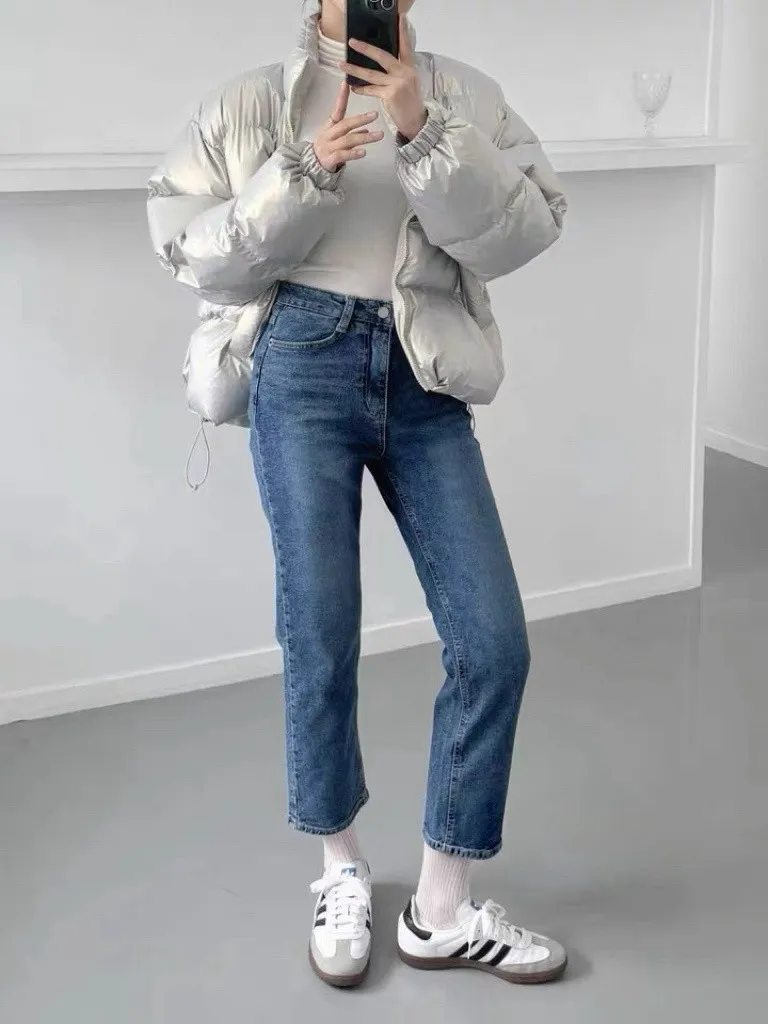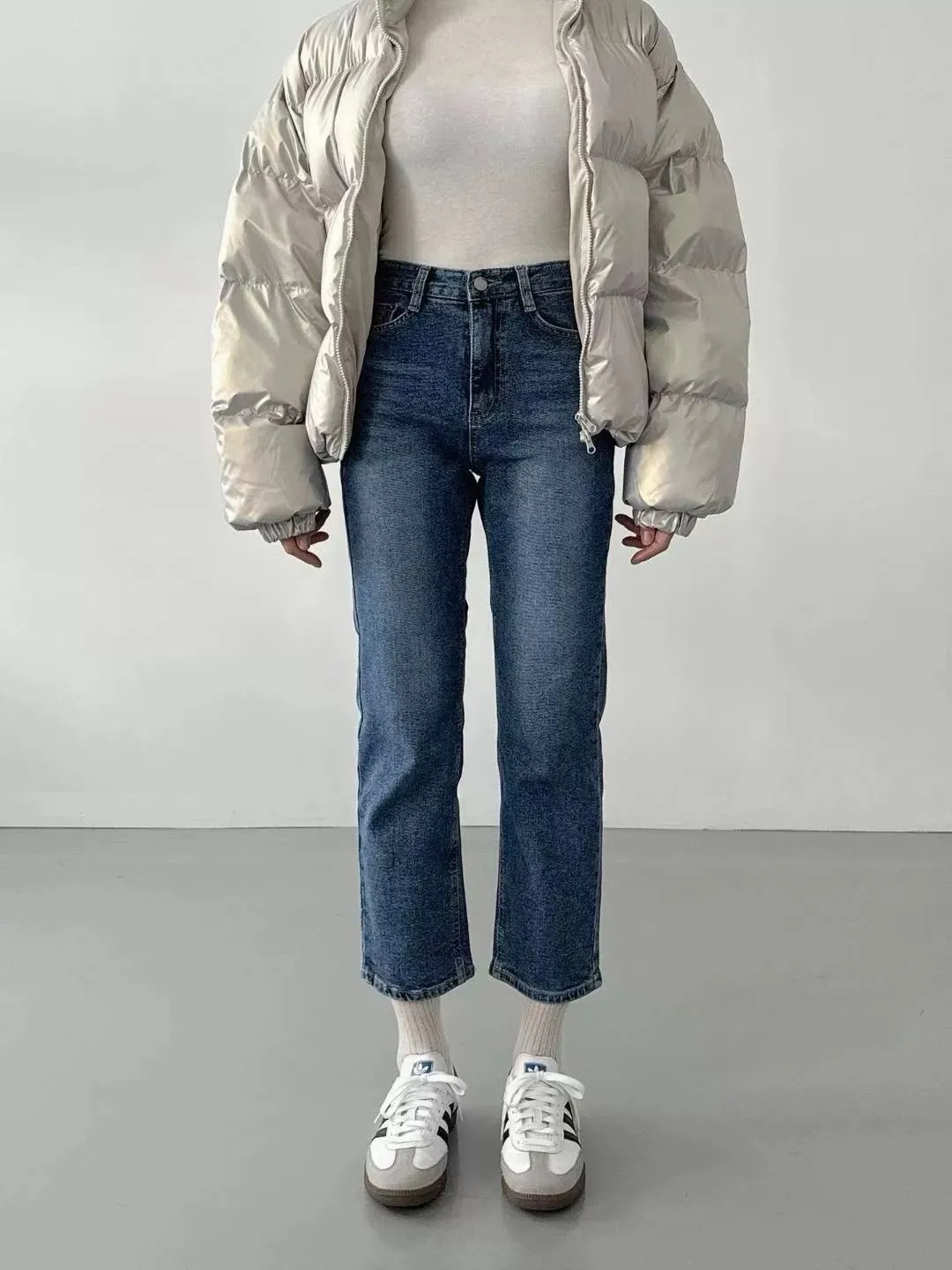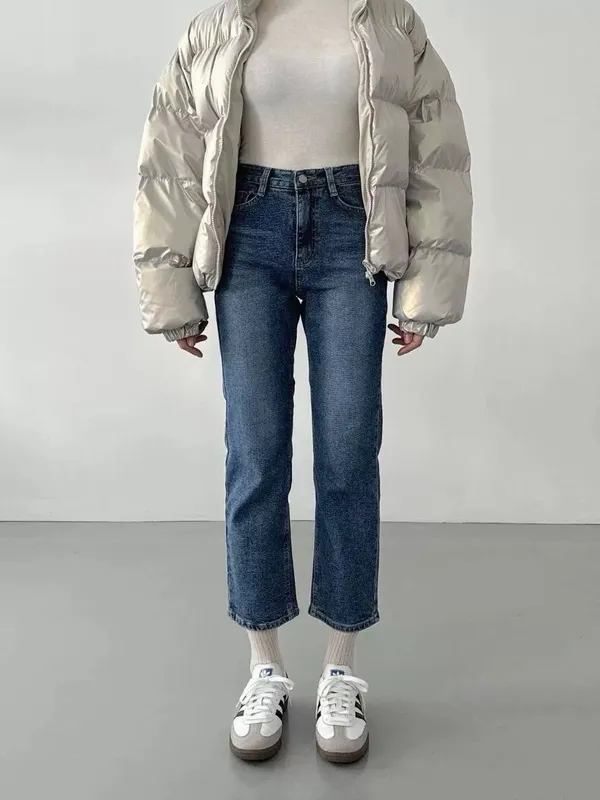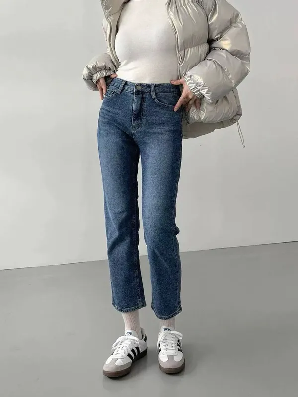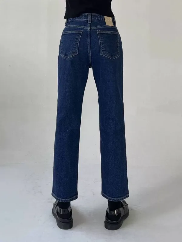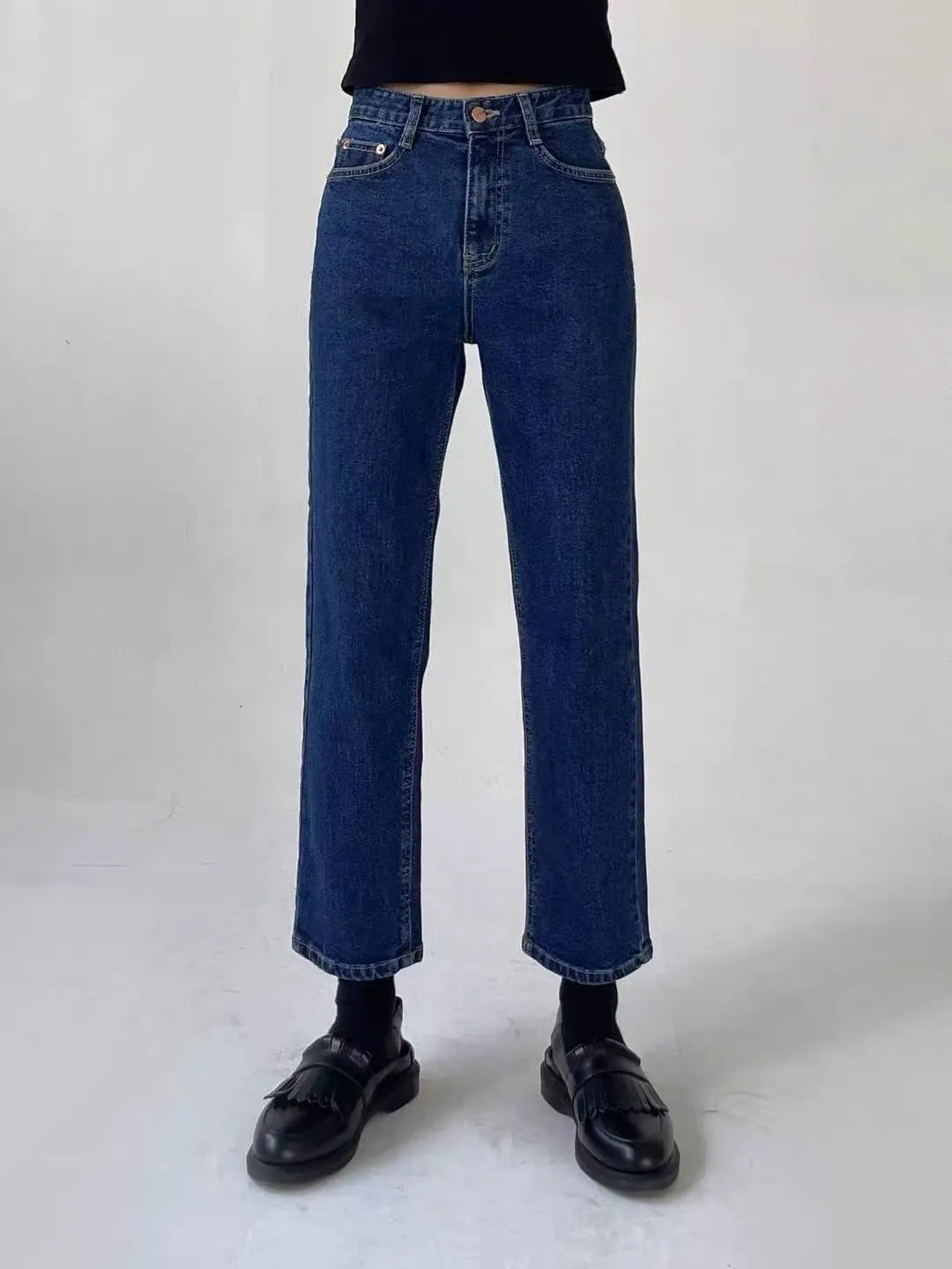 深藍小直筒牛仔褲