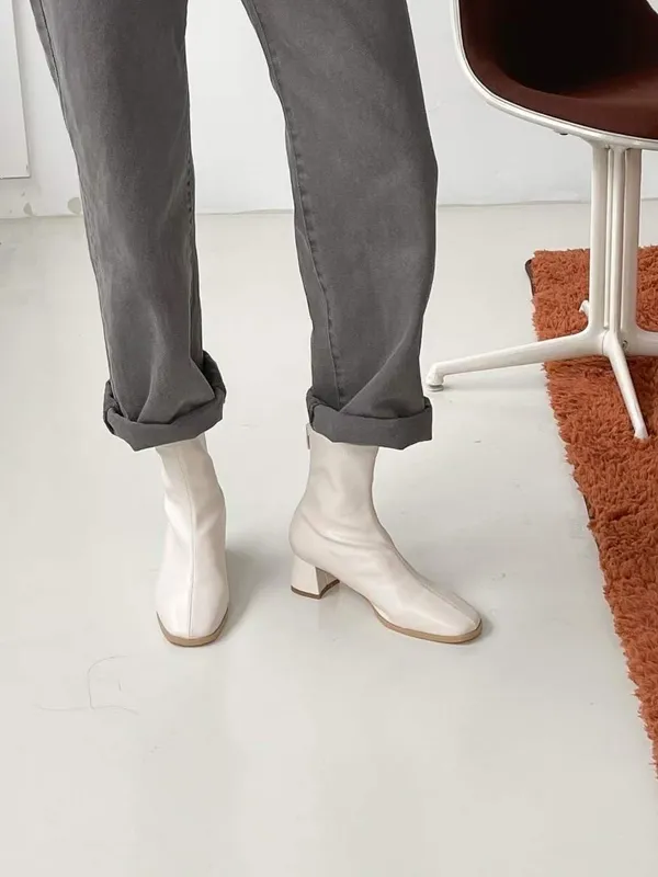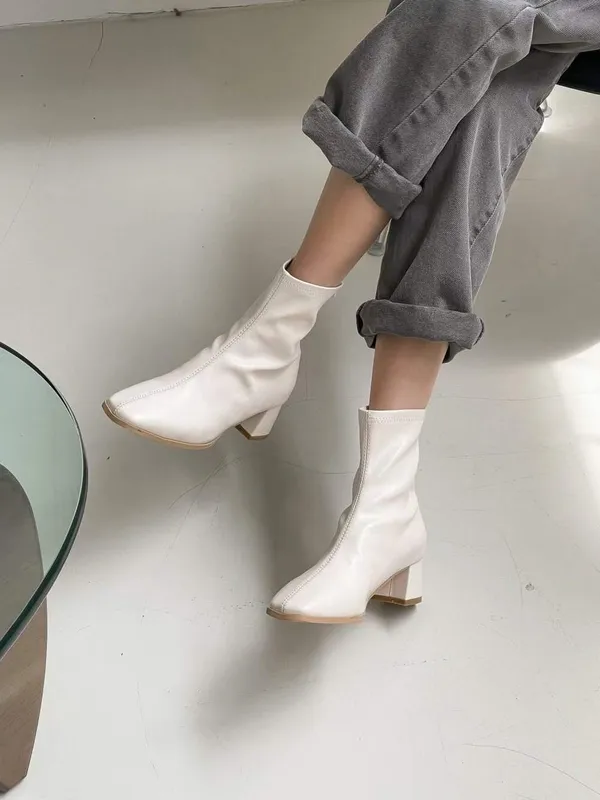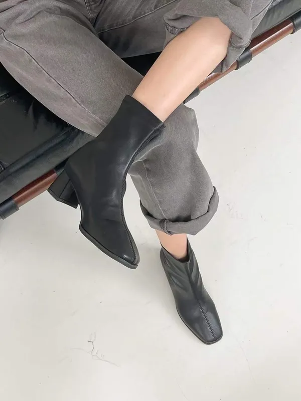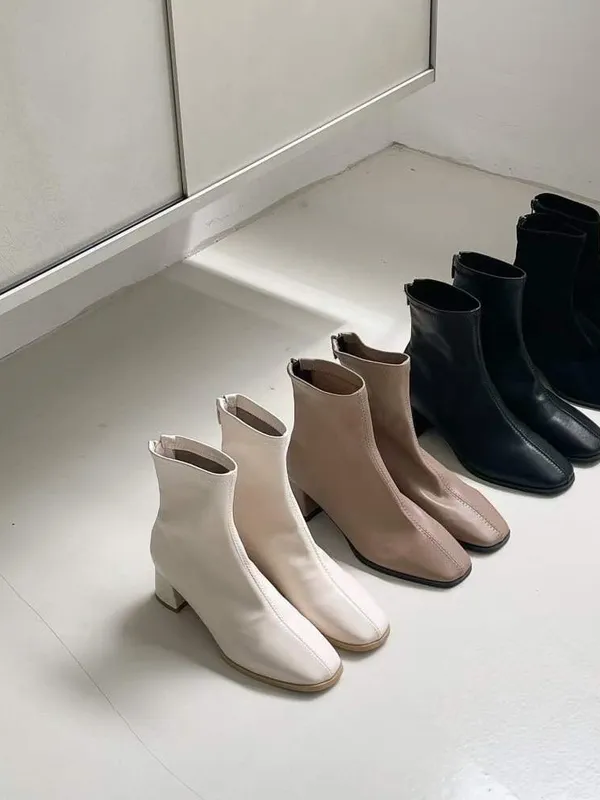 後拉錬車縫短靴(四色)35-40