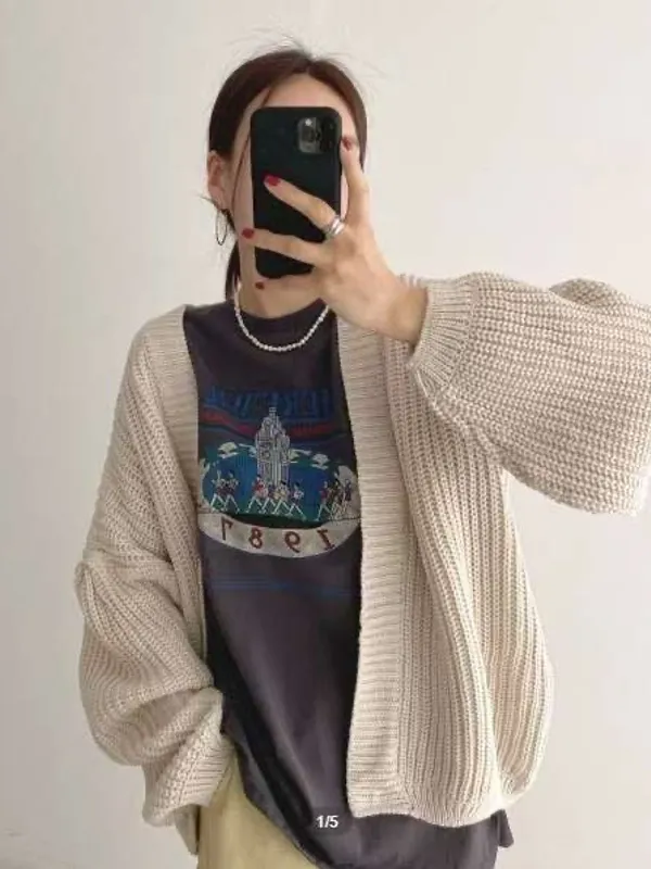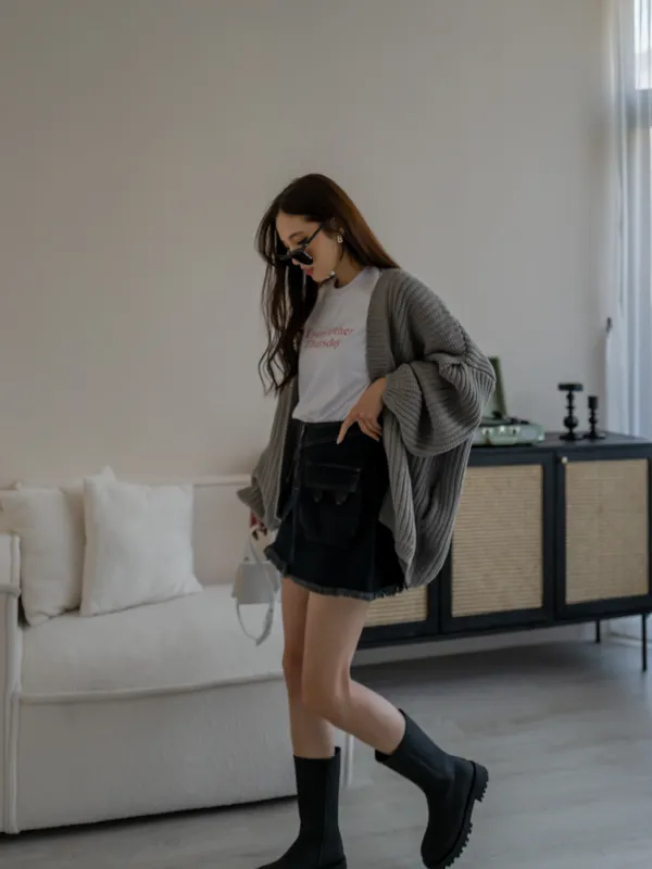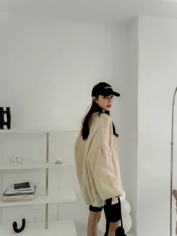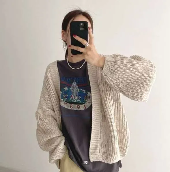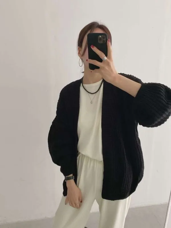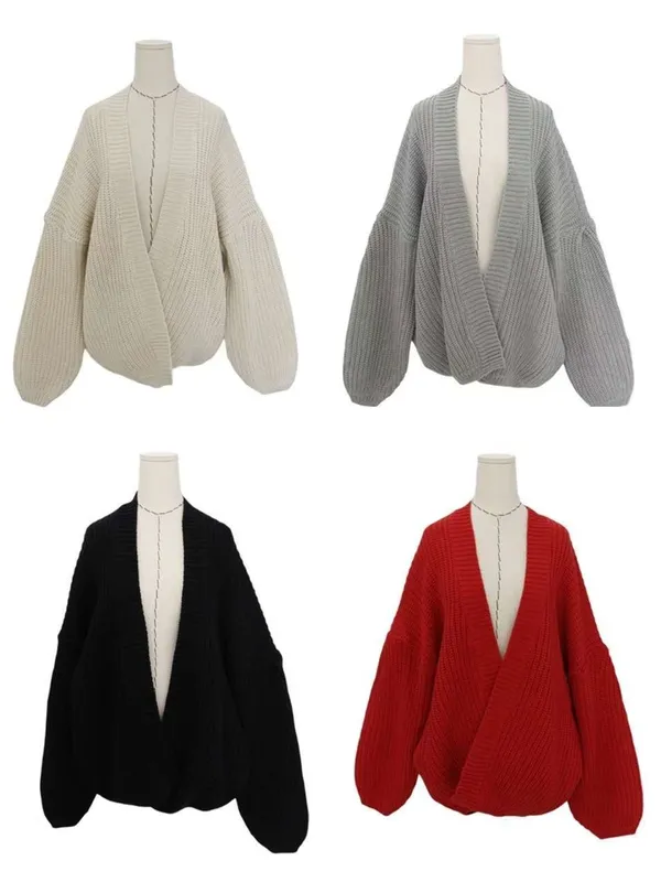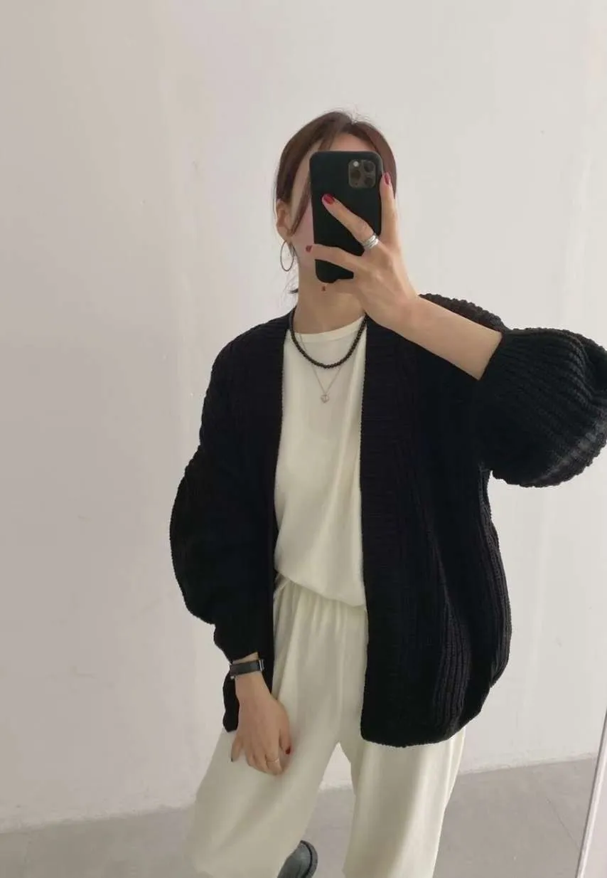 開襟粗針織外罩(4色)
