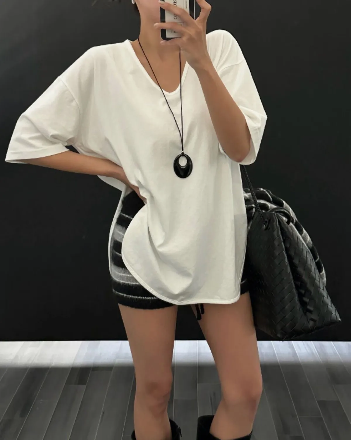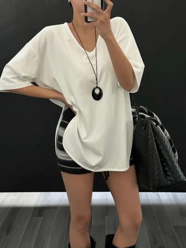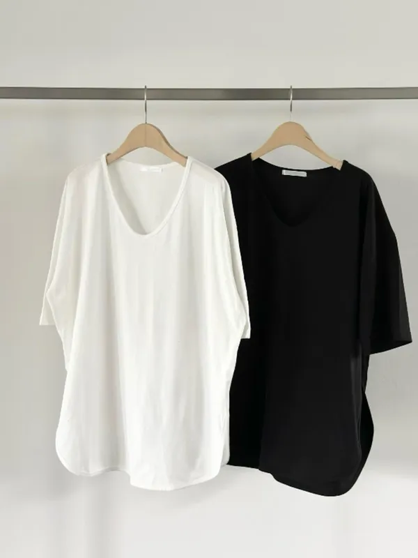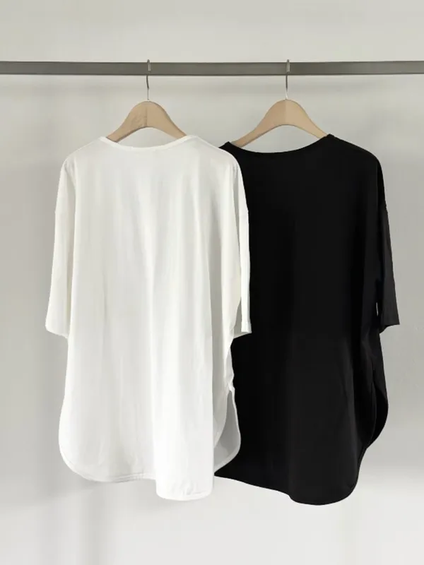 下圓弧素短T(2色)