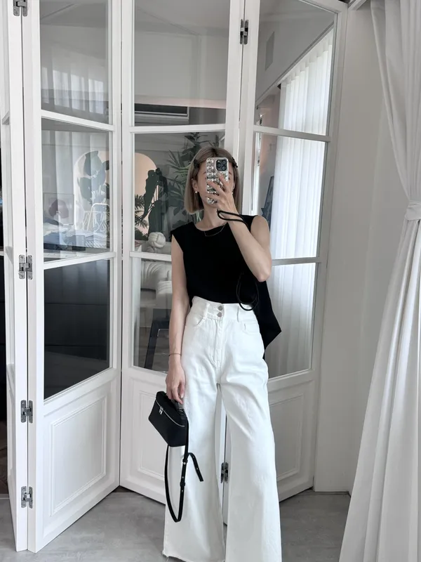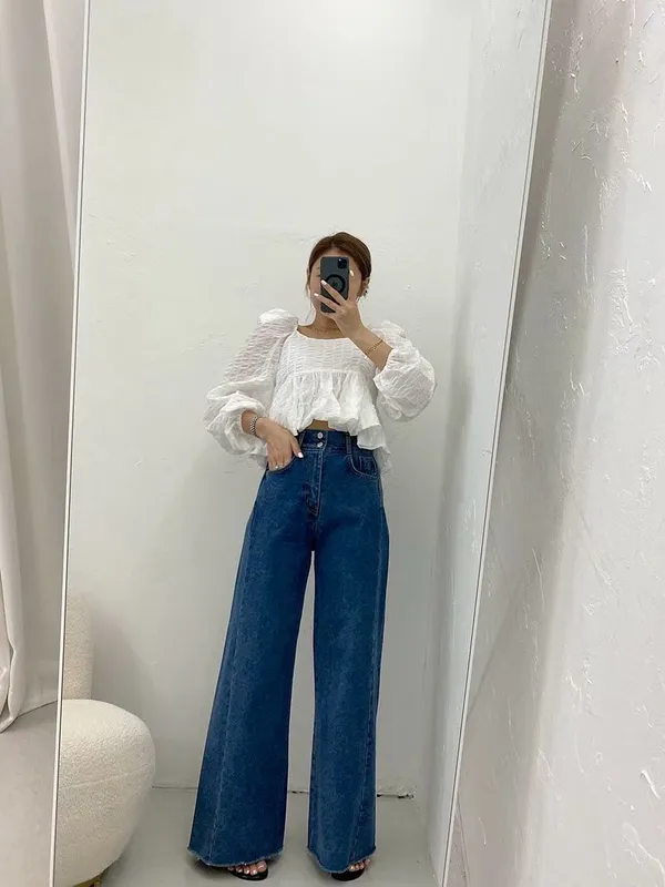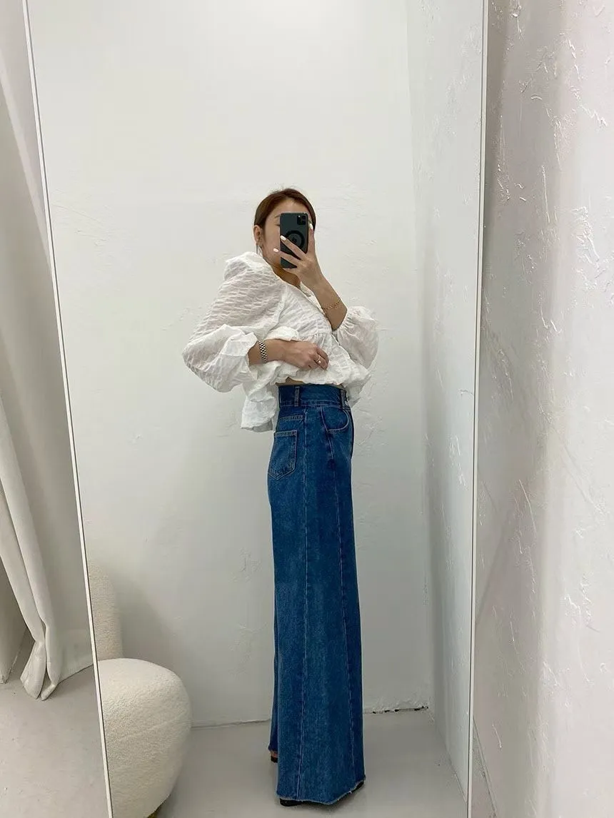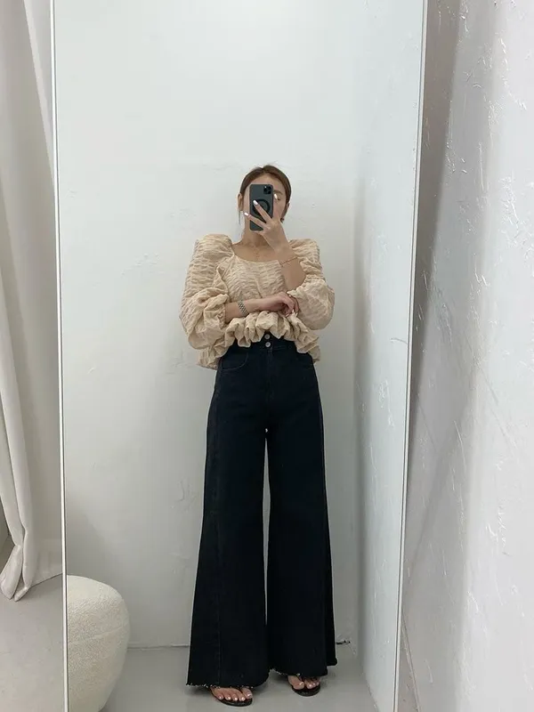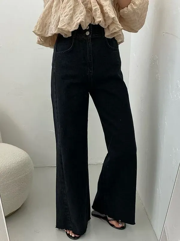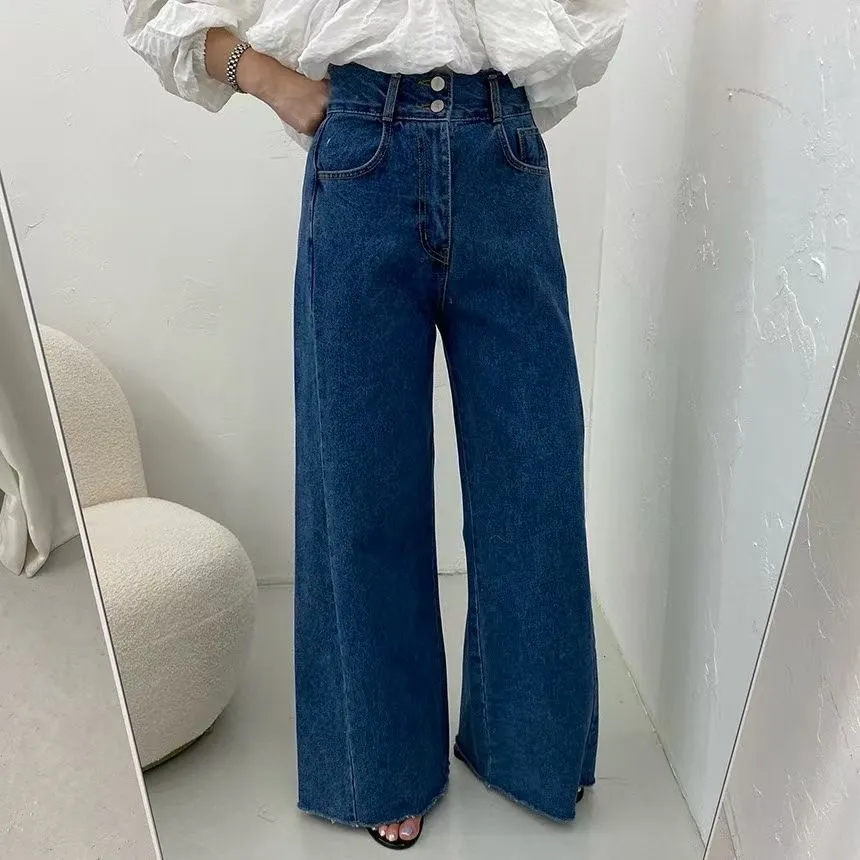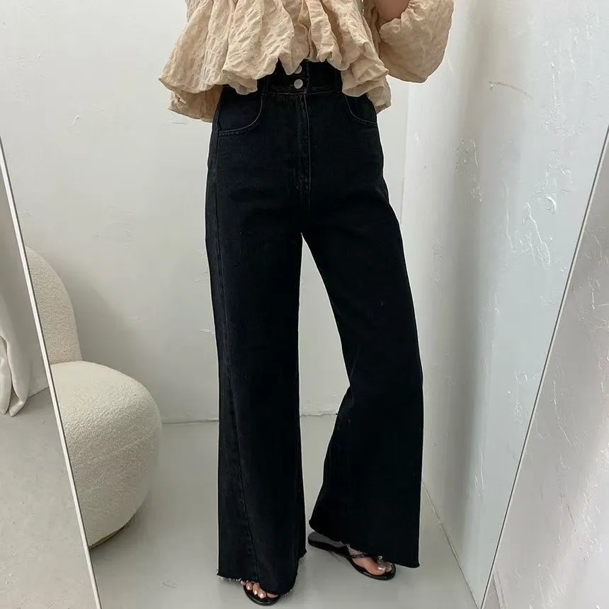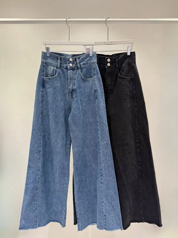 禸摩毛雙釦牛仔闊腿褲(4色)