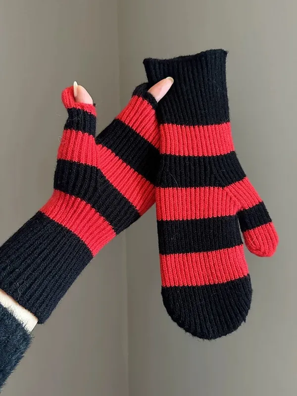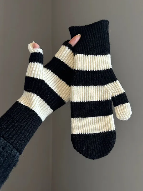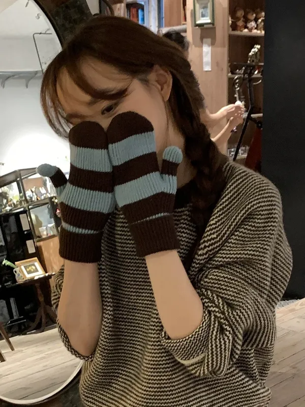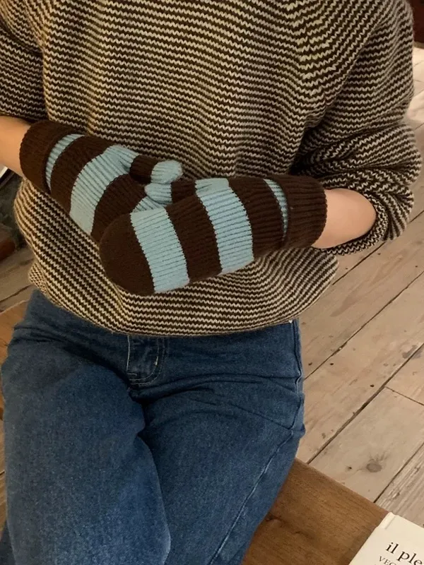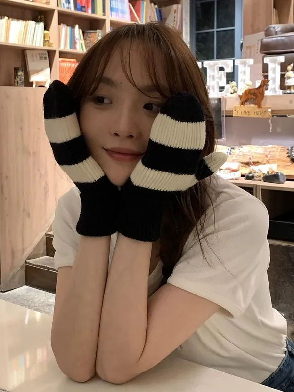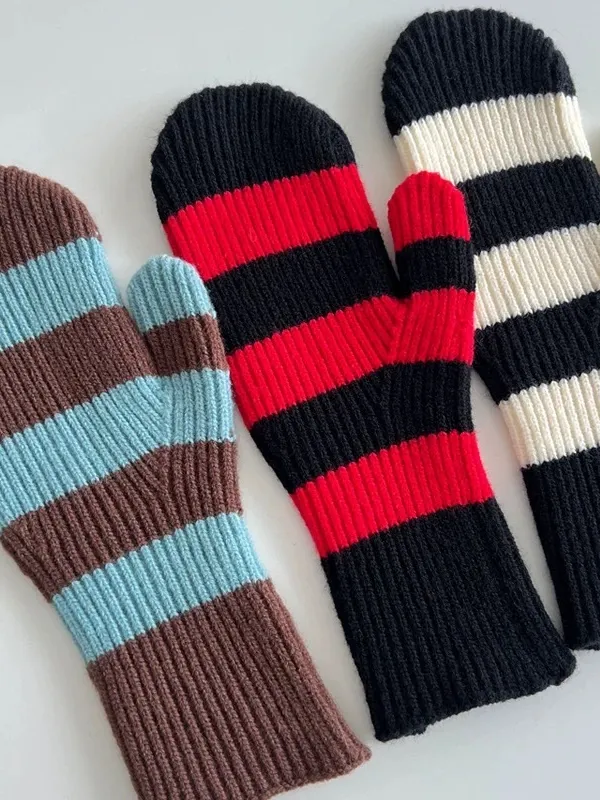 坑條條紋手套(3色)