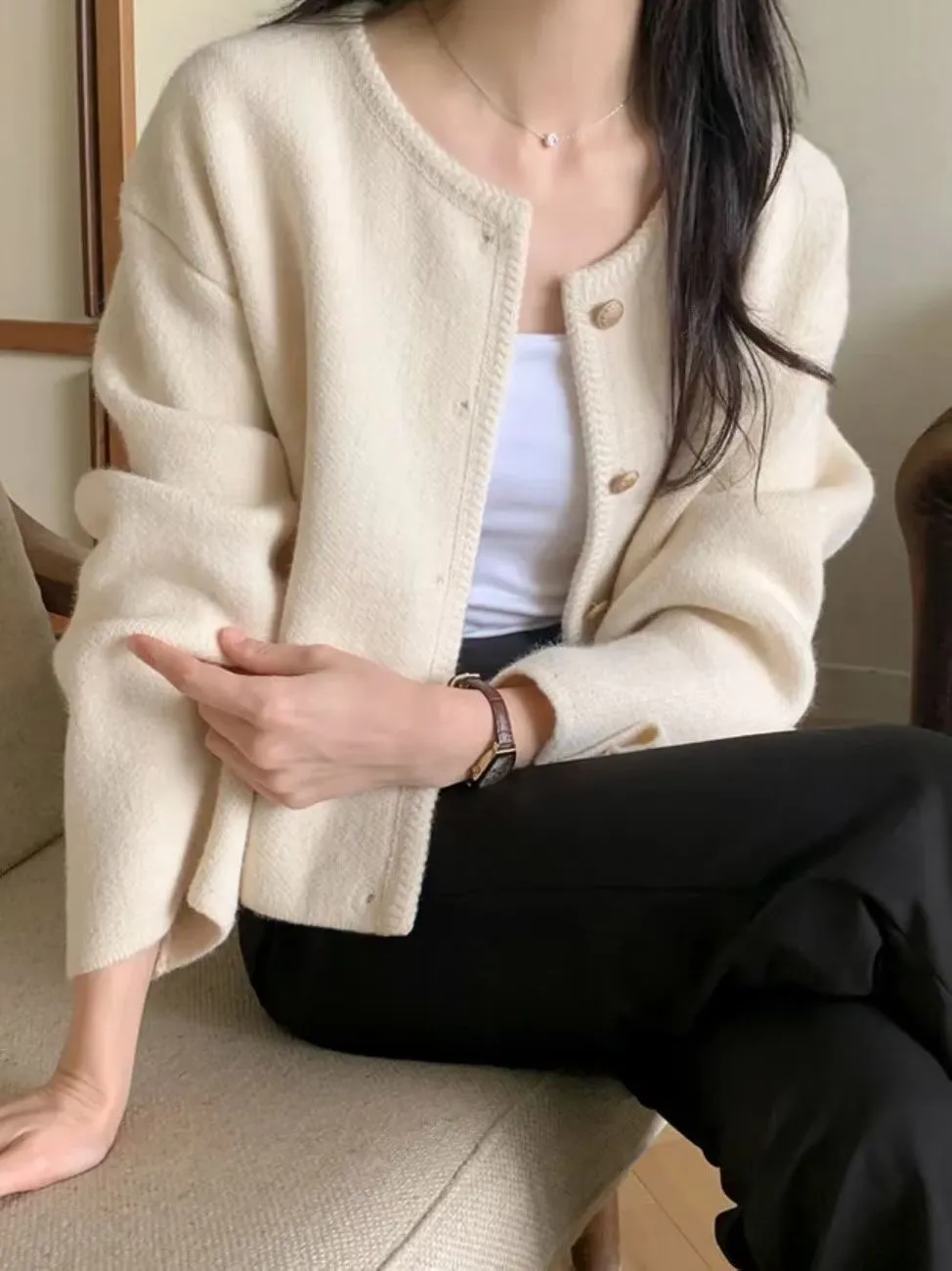 金釦混毛針織外(3色)