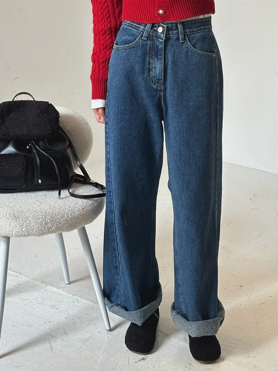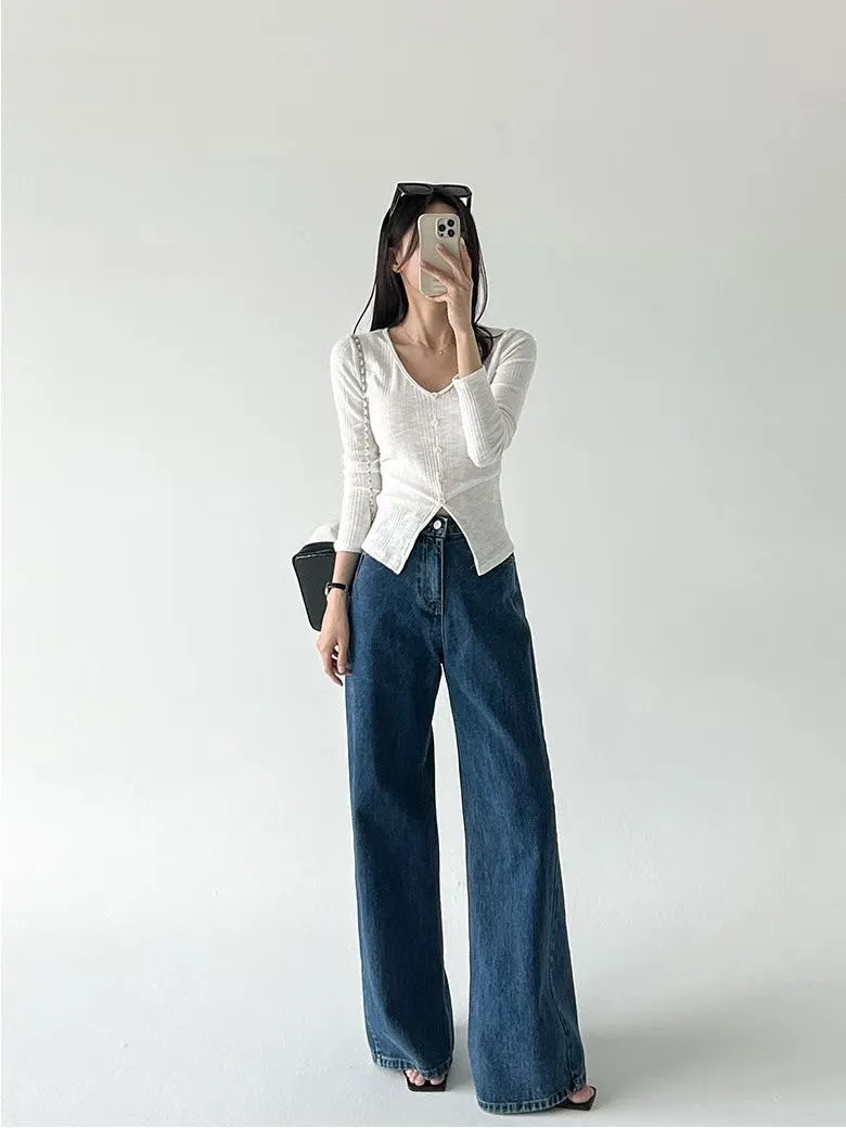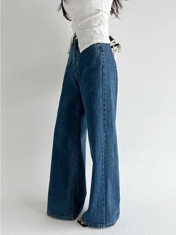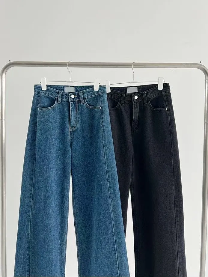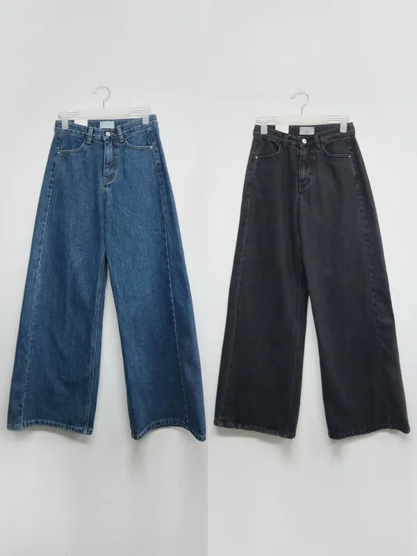 側拼車縫寬直筒牛仔褲(2色)