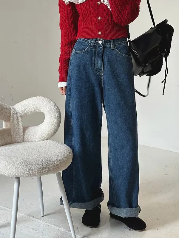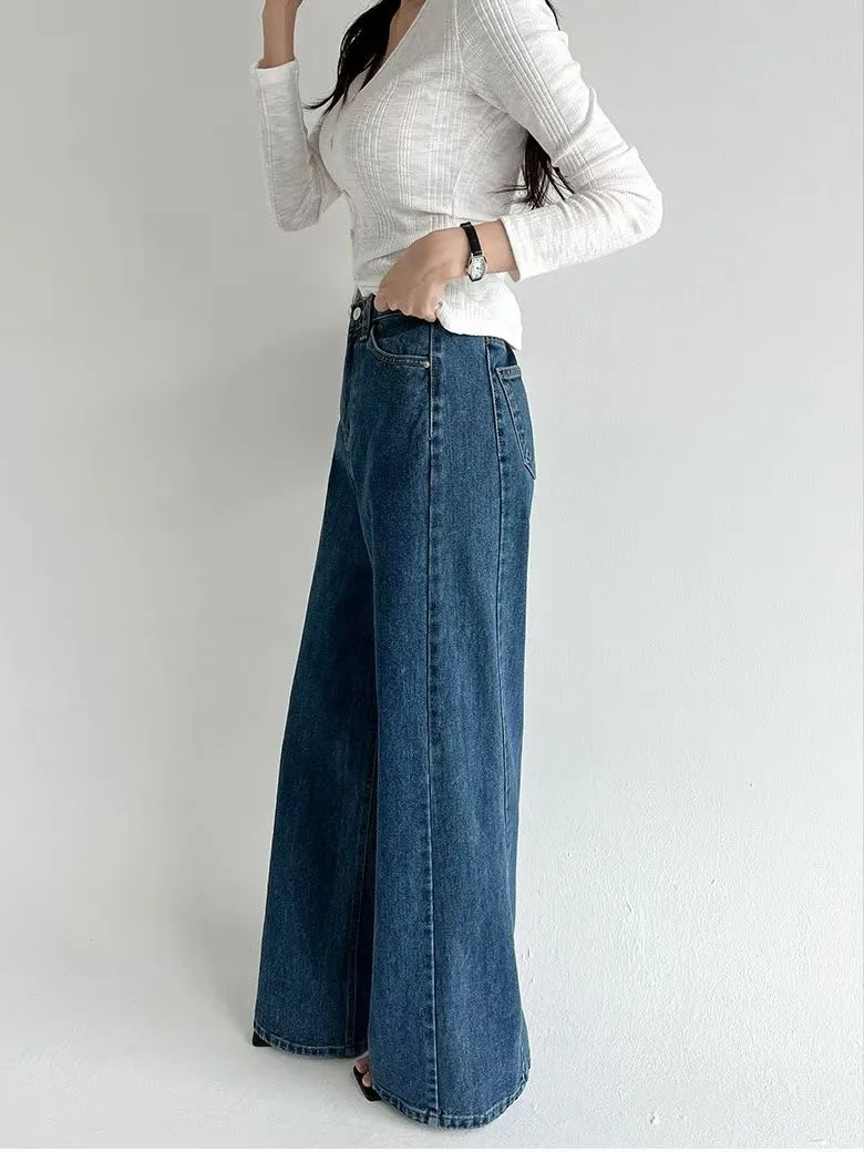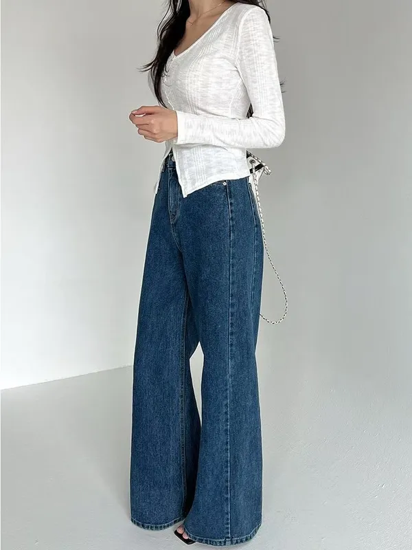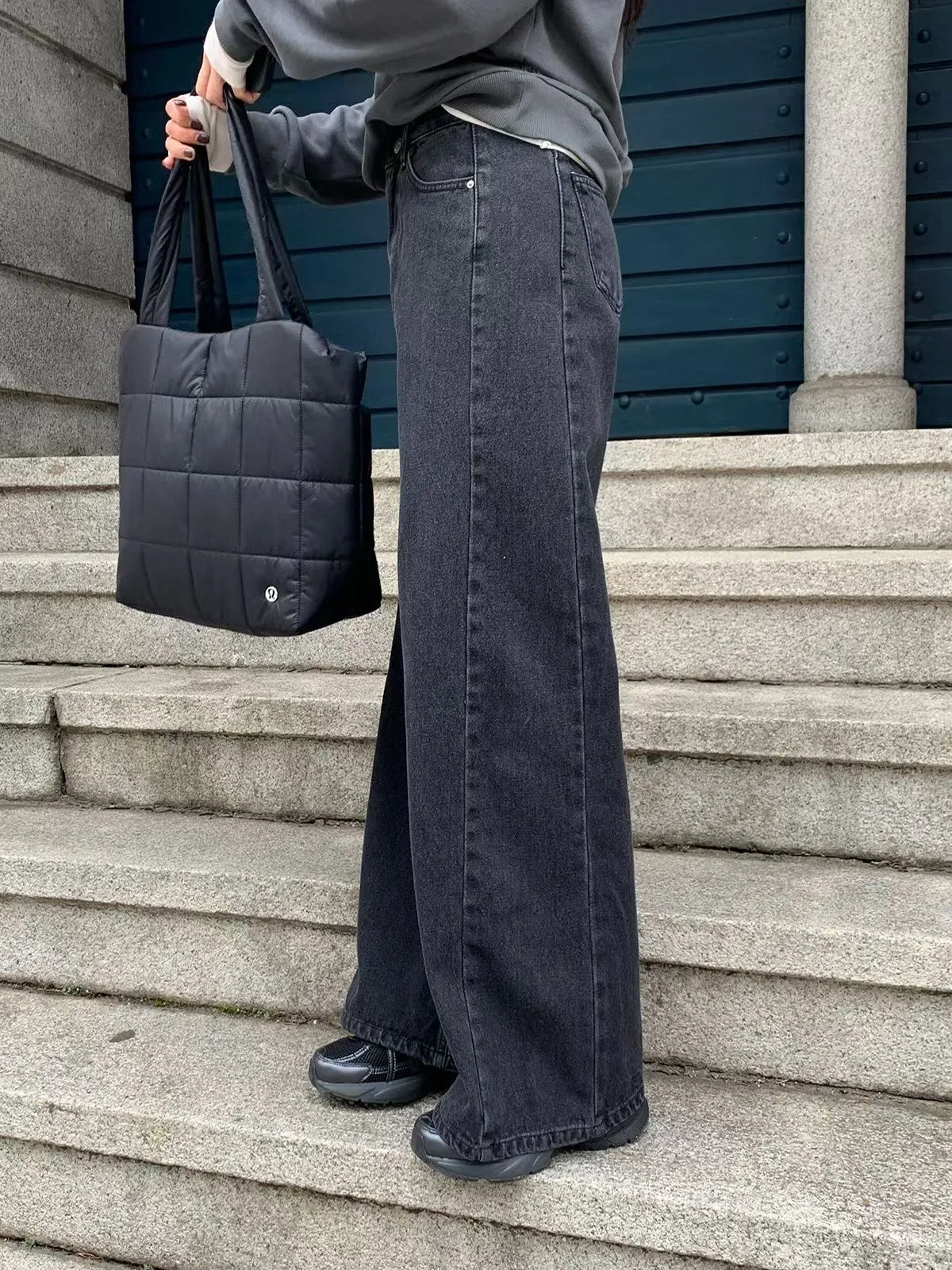 側拼車縫寬直筒牛仔褲(2色)