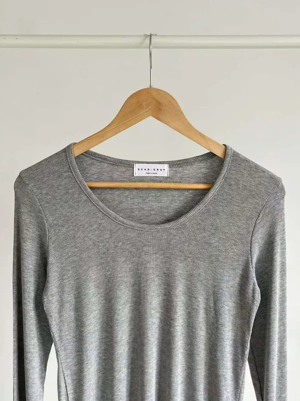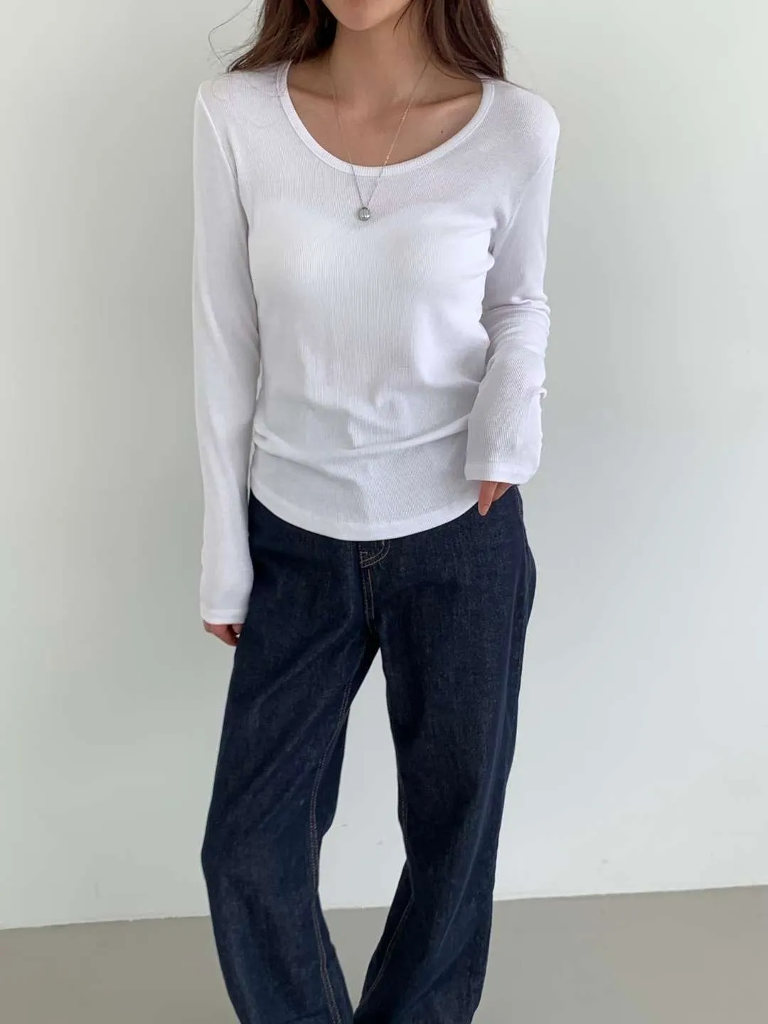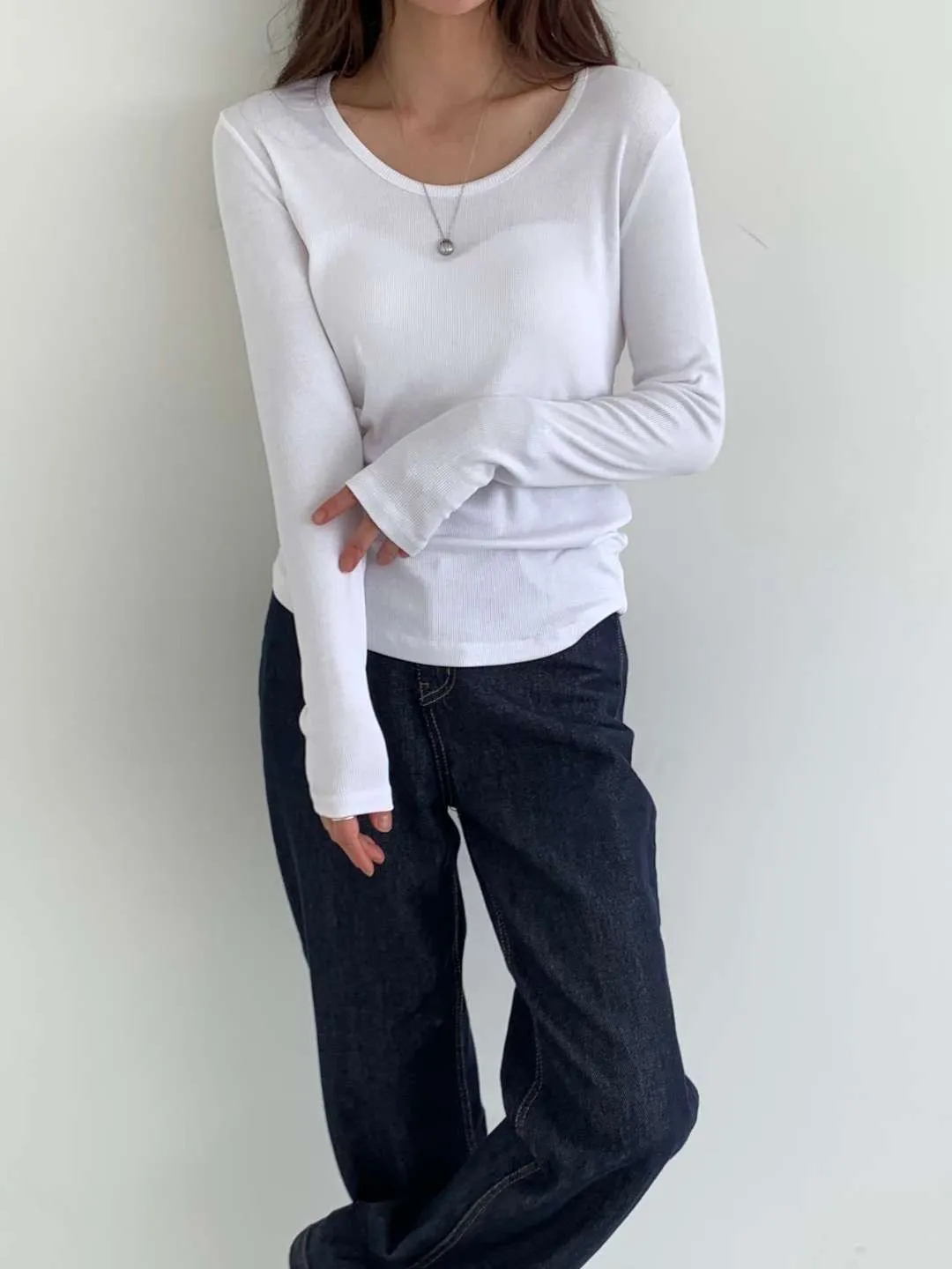 大圓領細羅紋長T(5色)