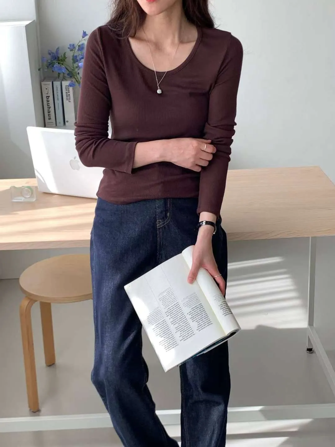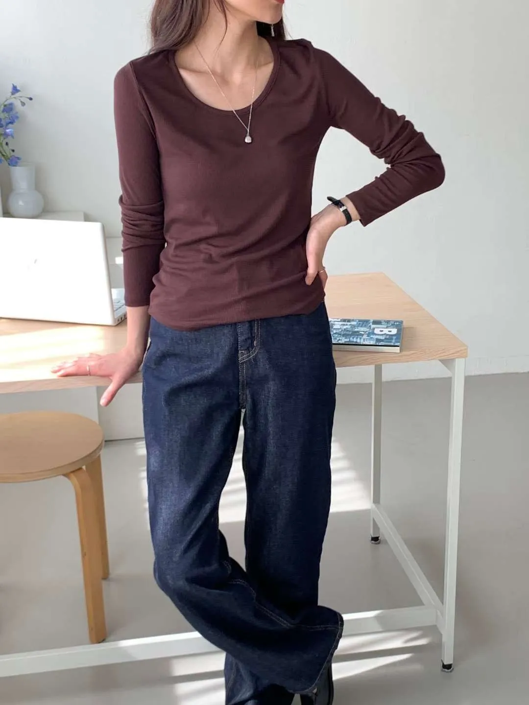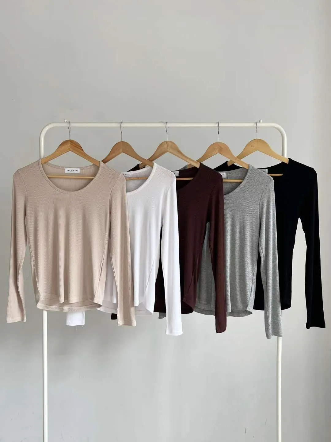 大圓領細羅紋長T(5色)