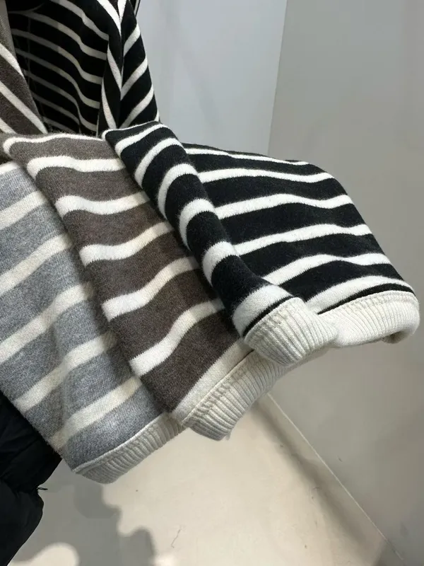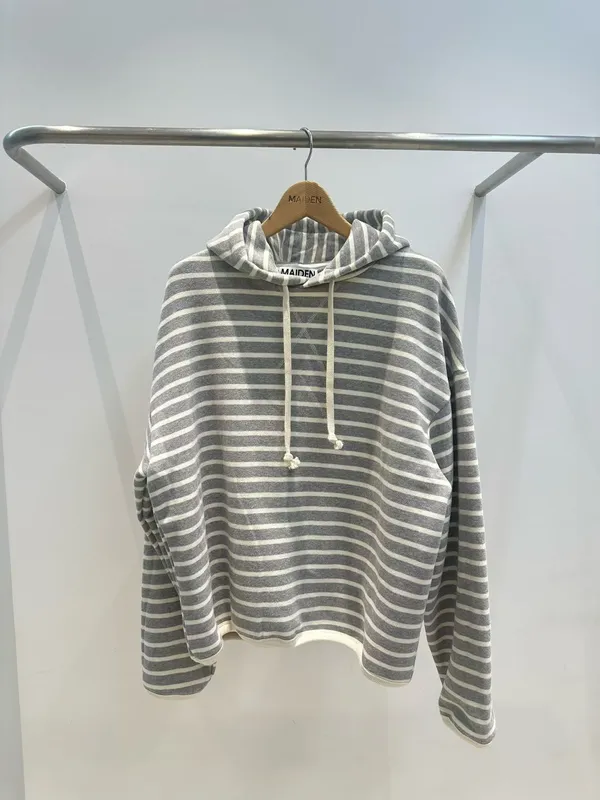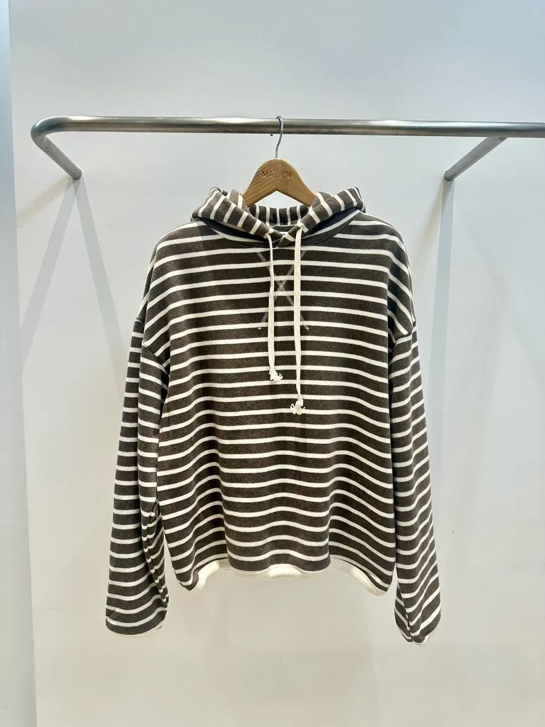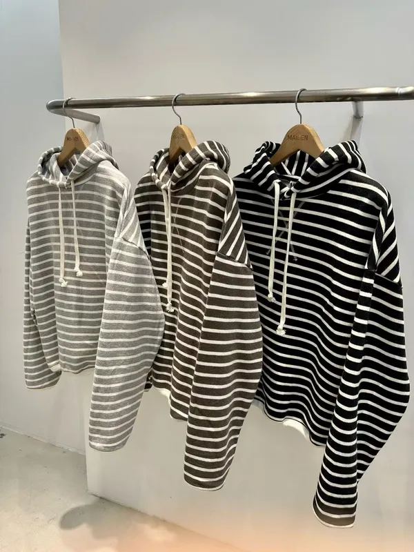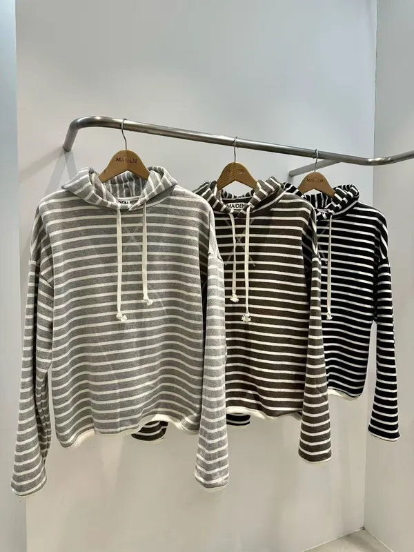 內刷毛條紋帽T(3色)