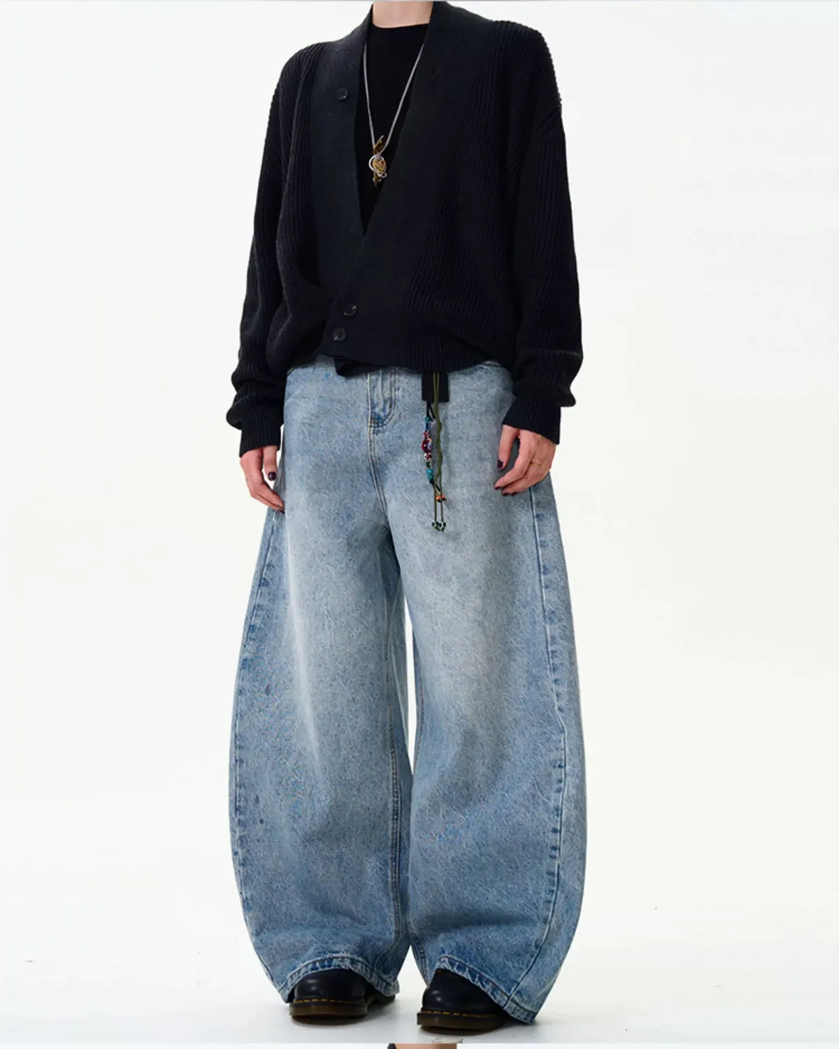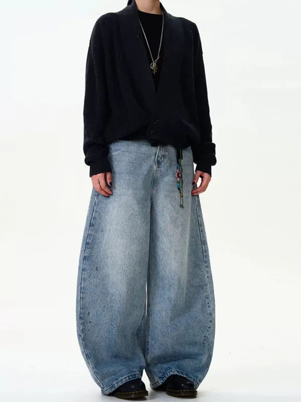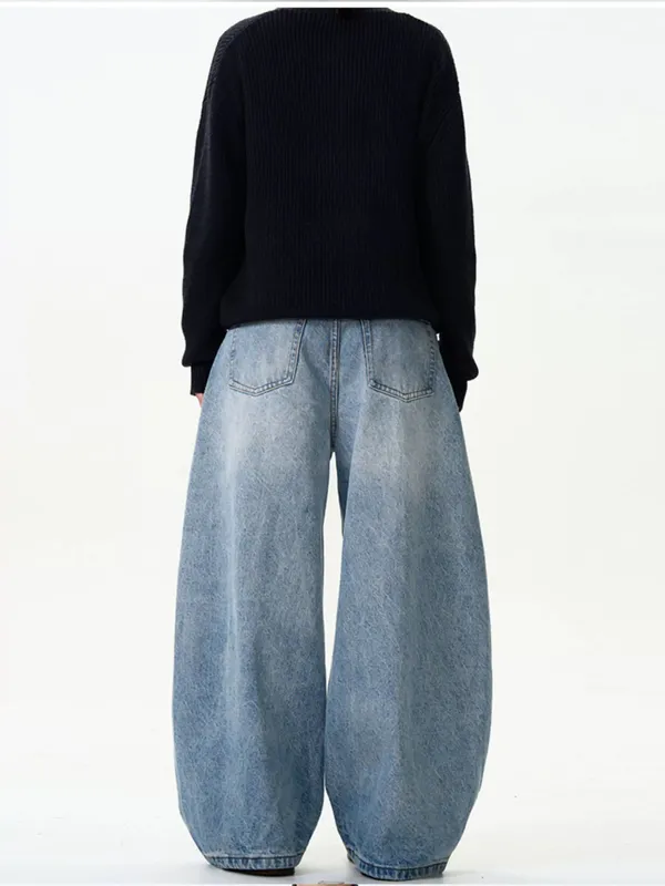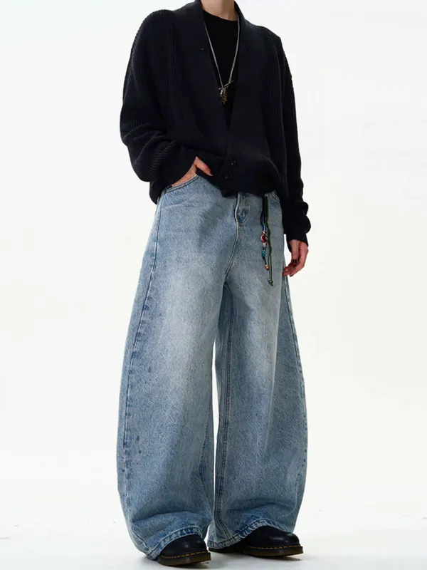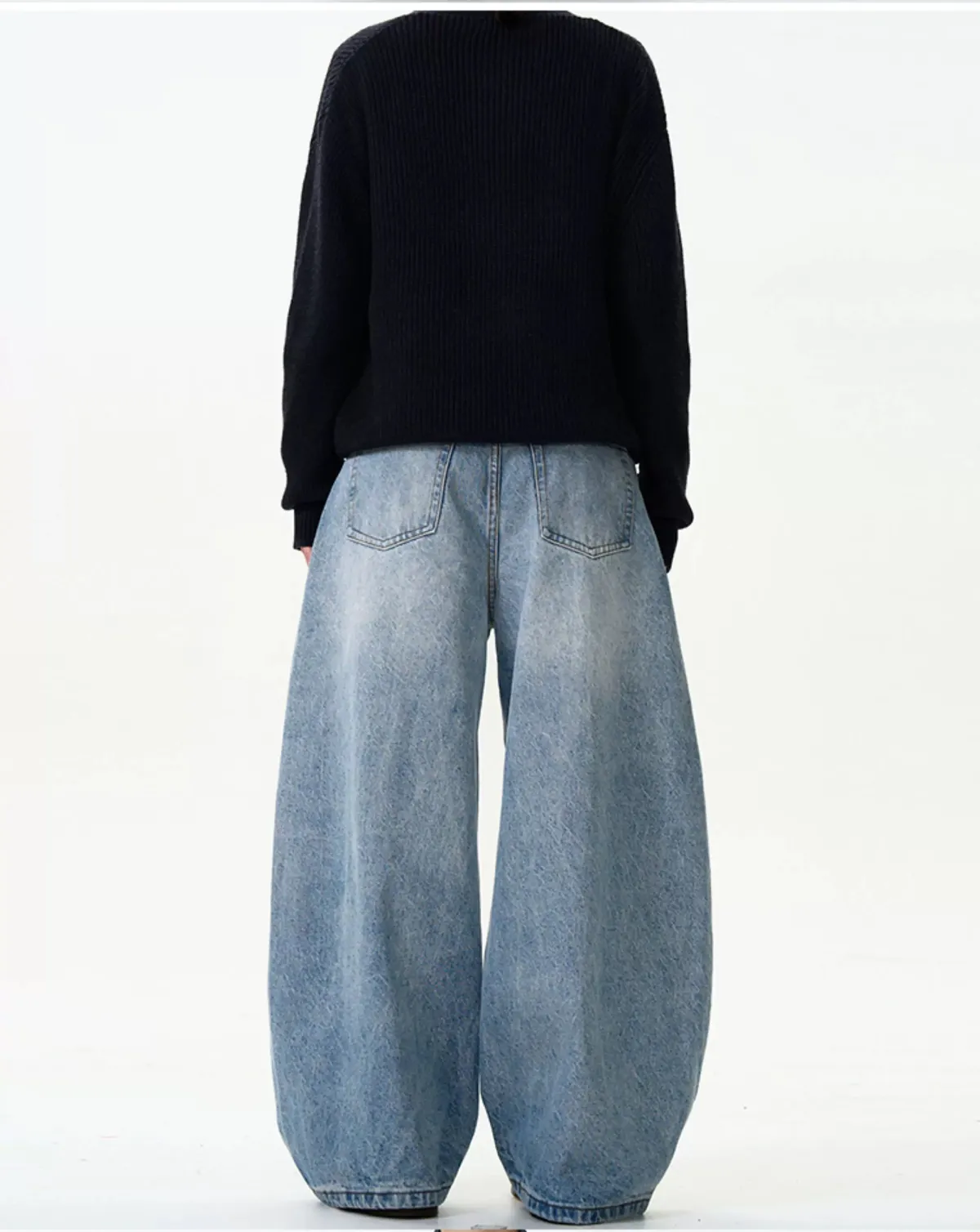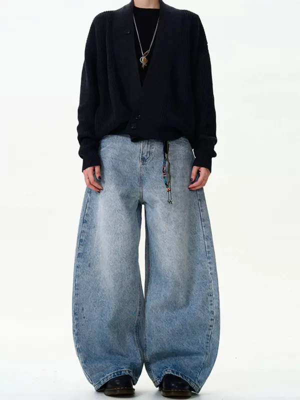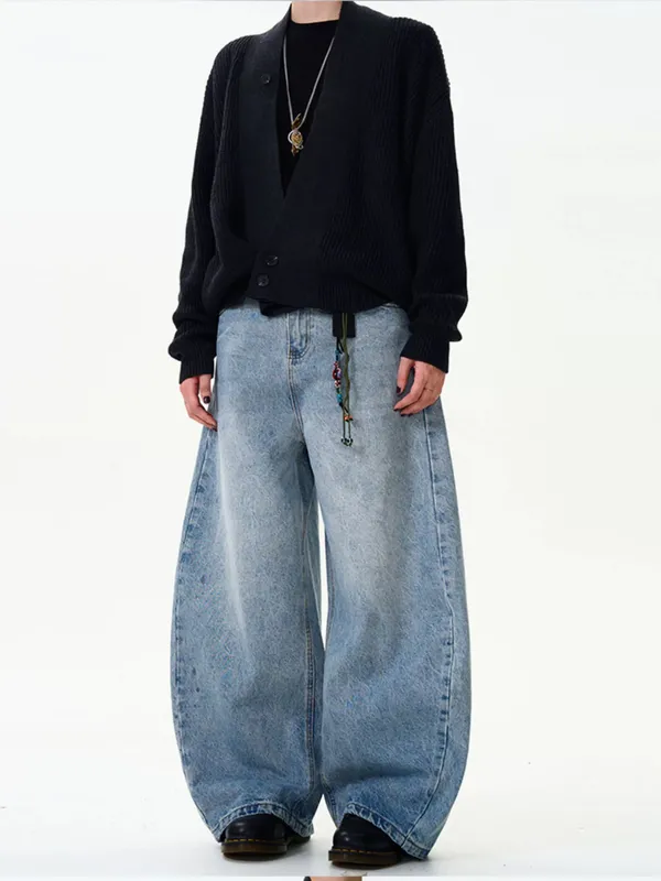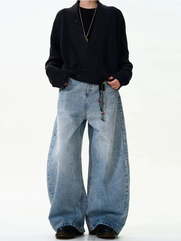 水洗藍牛仔彎刀褲