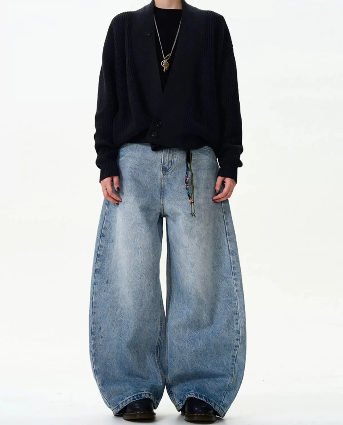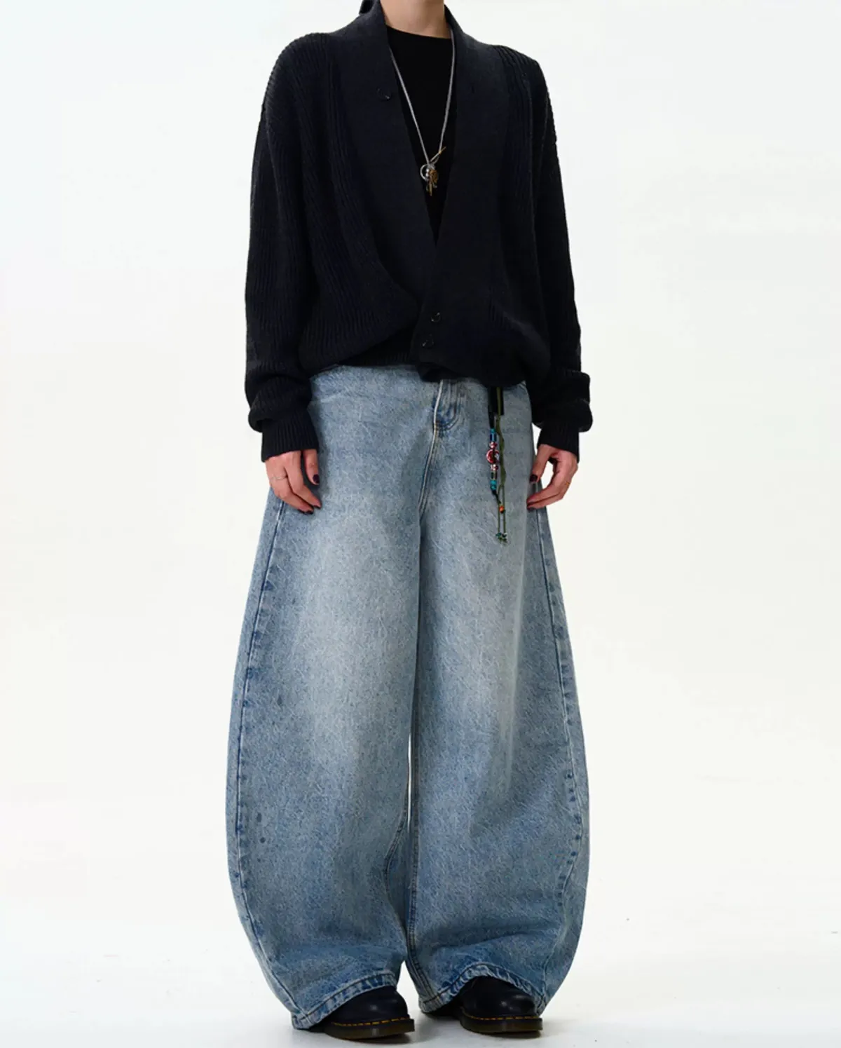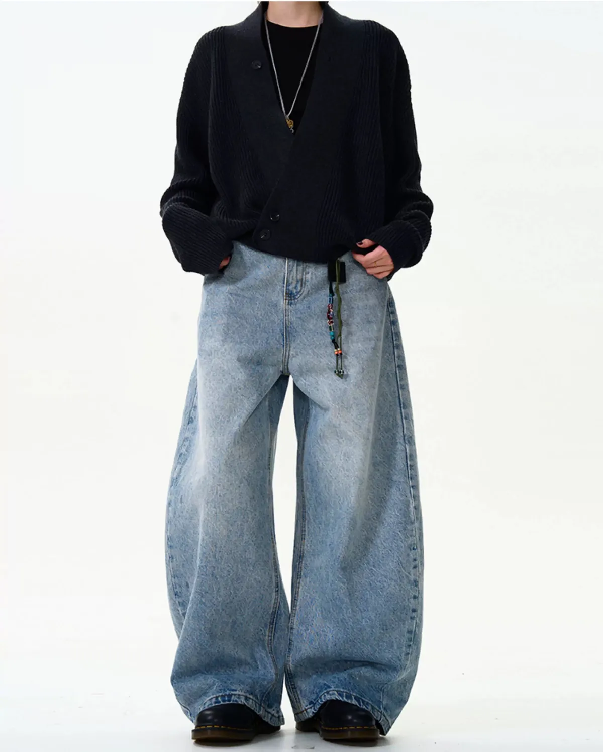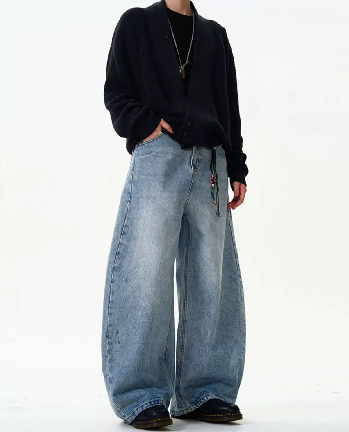 水洗藍牛仔彎刀褲