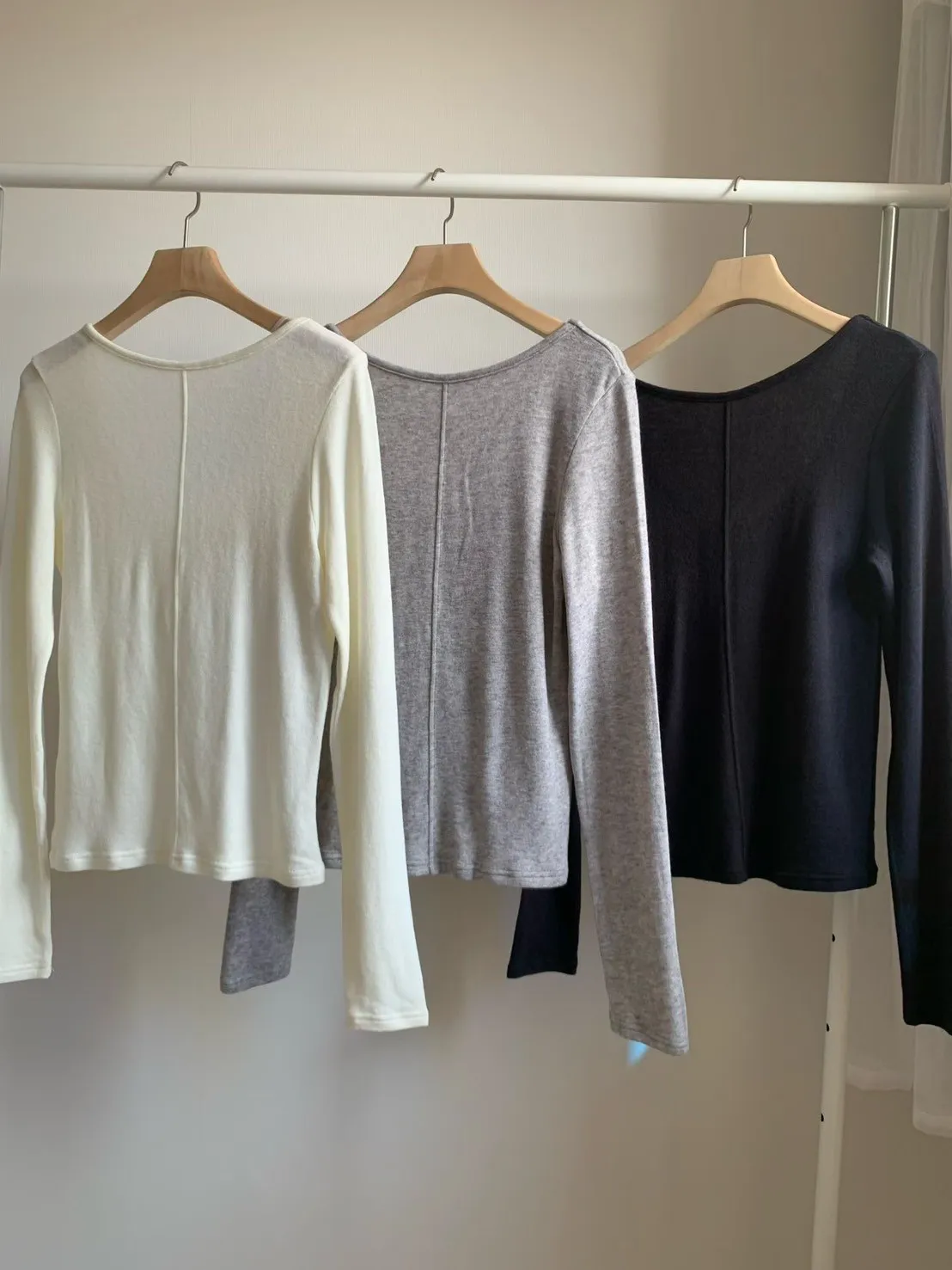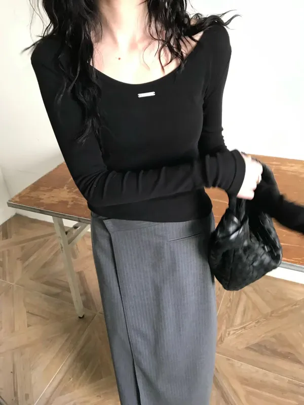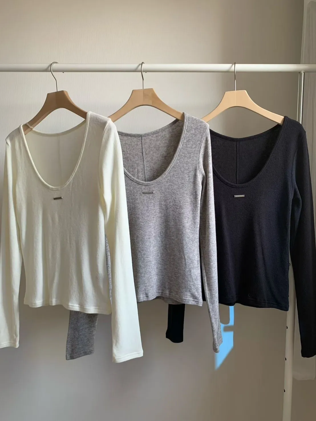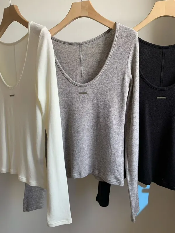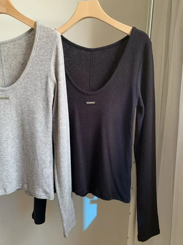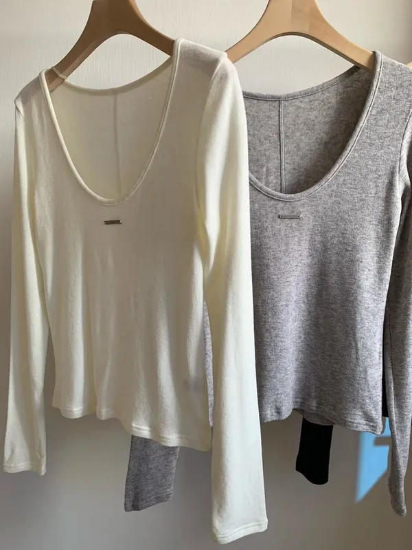 U領小鐵牌長T(3色)