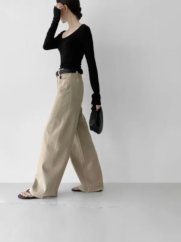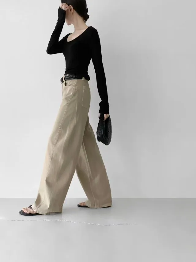 側車縫牛仔寬褲(3色)