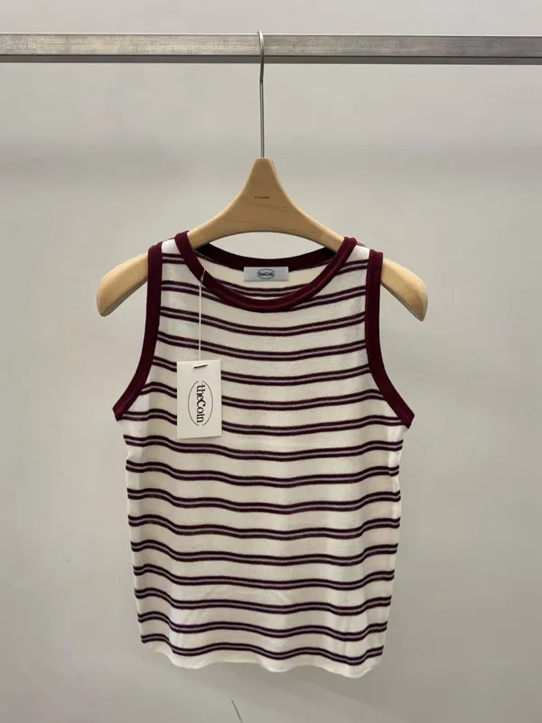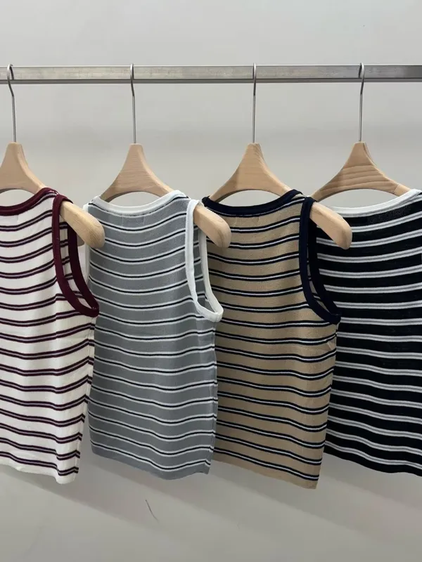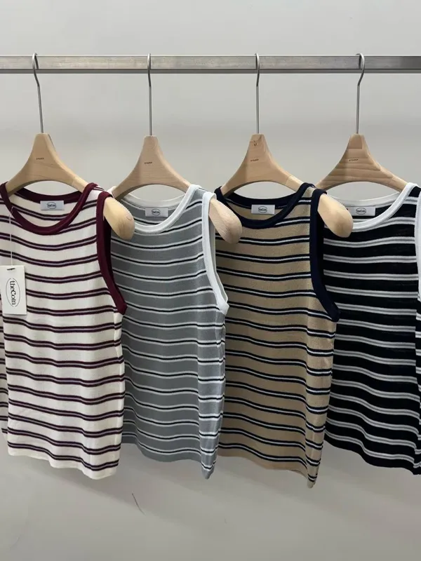 拼色條紋針織背心(4色)