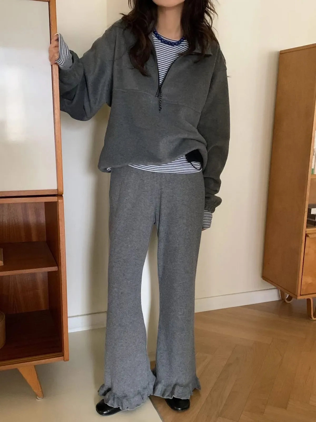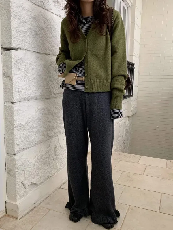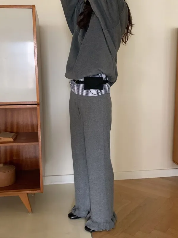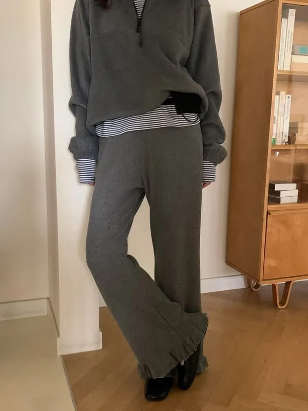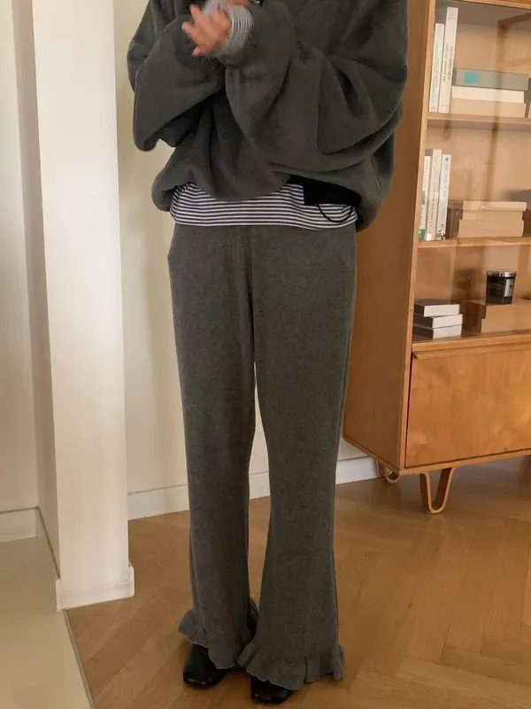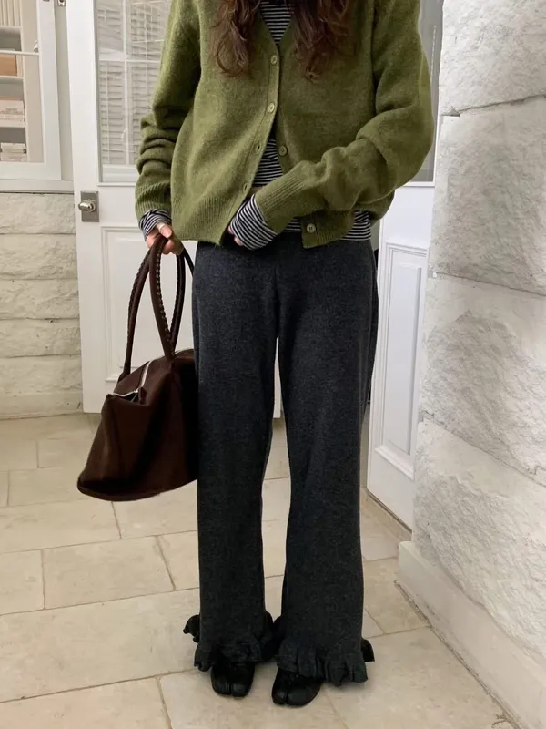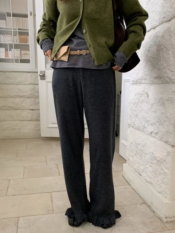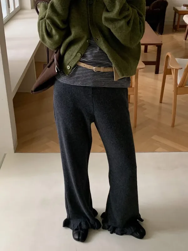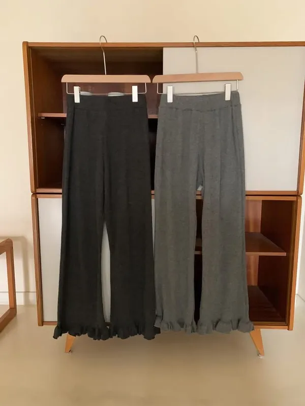 鬆緊羅紋荷葉長褲(2色)