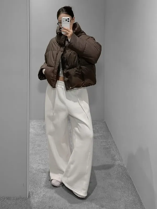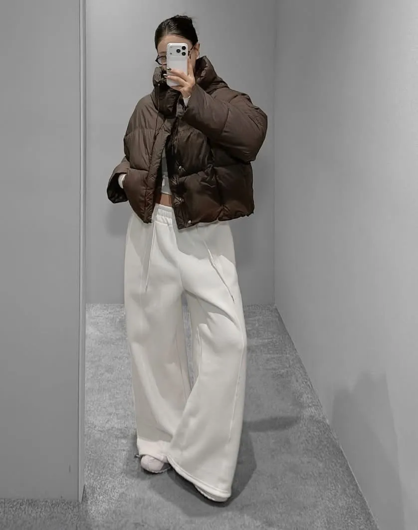 內刷毛鬆緊束口棉寬褲(3色)