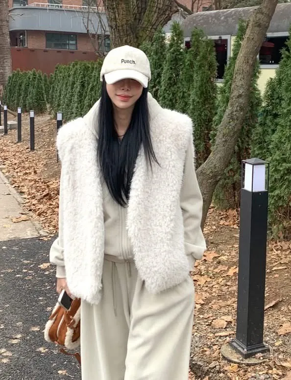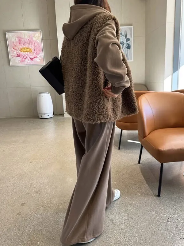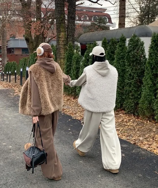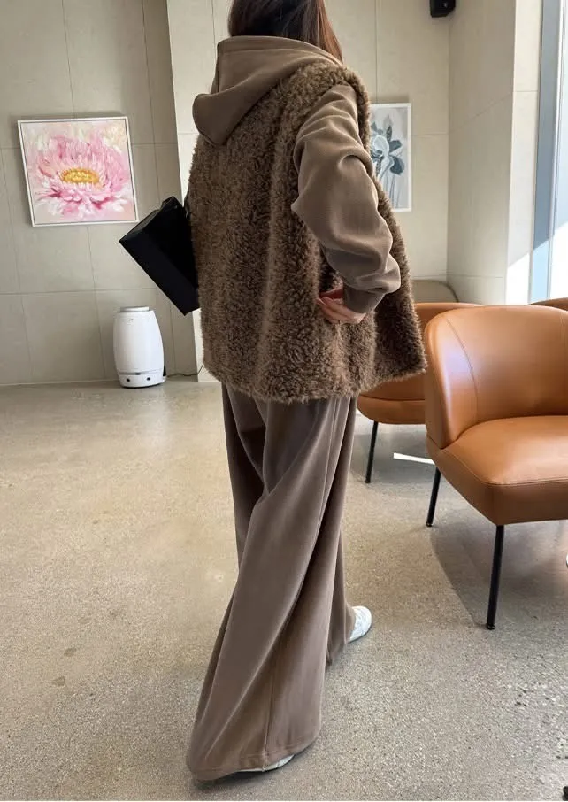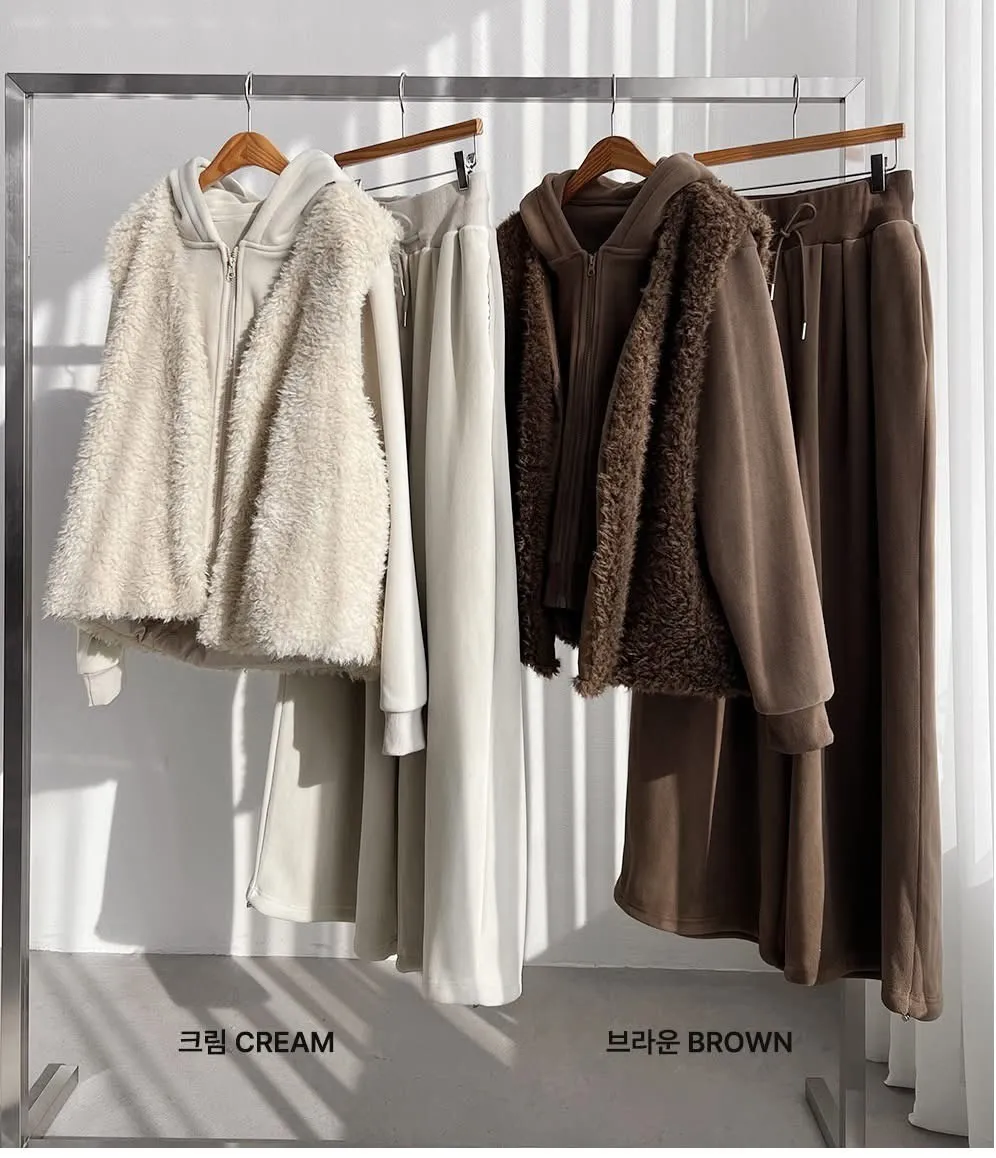 毛毛背心+帽毛套+長褲三件式SET(2色)