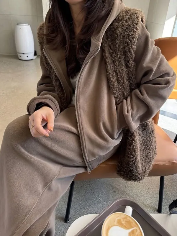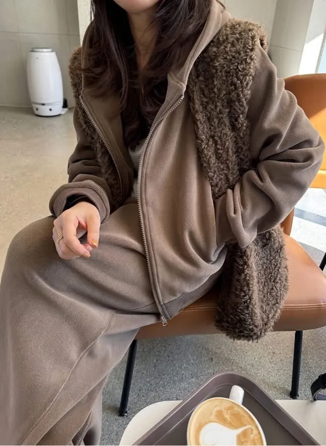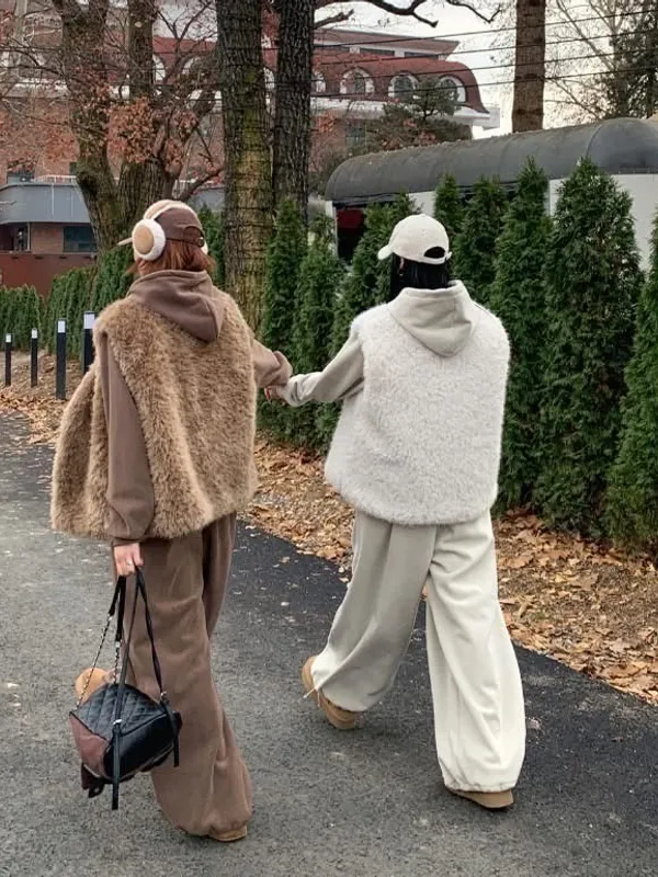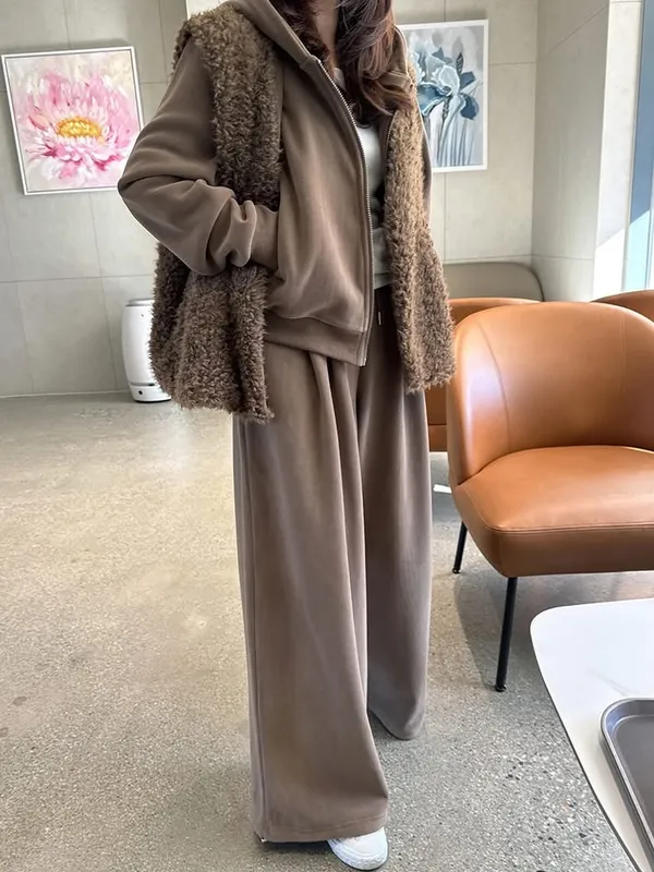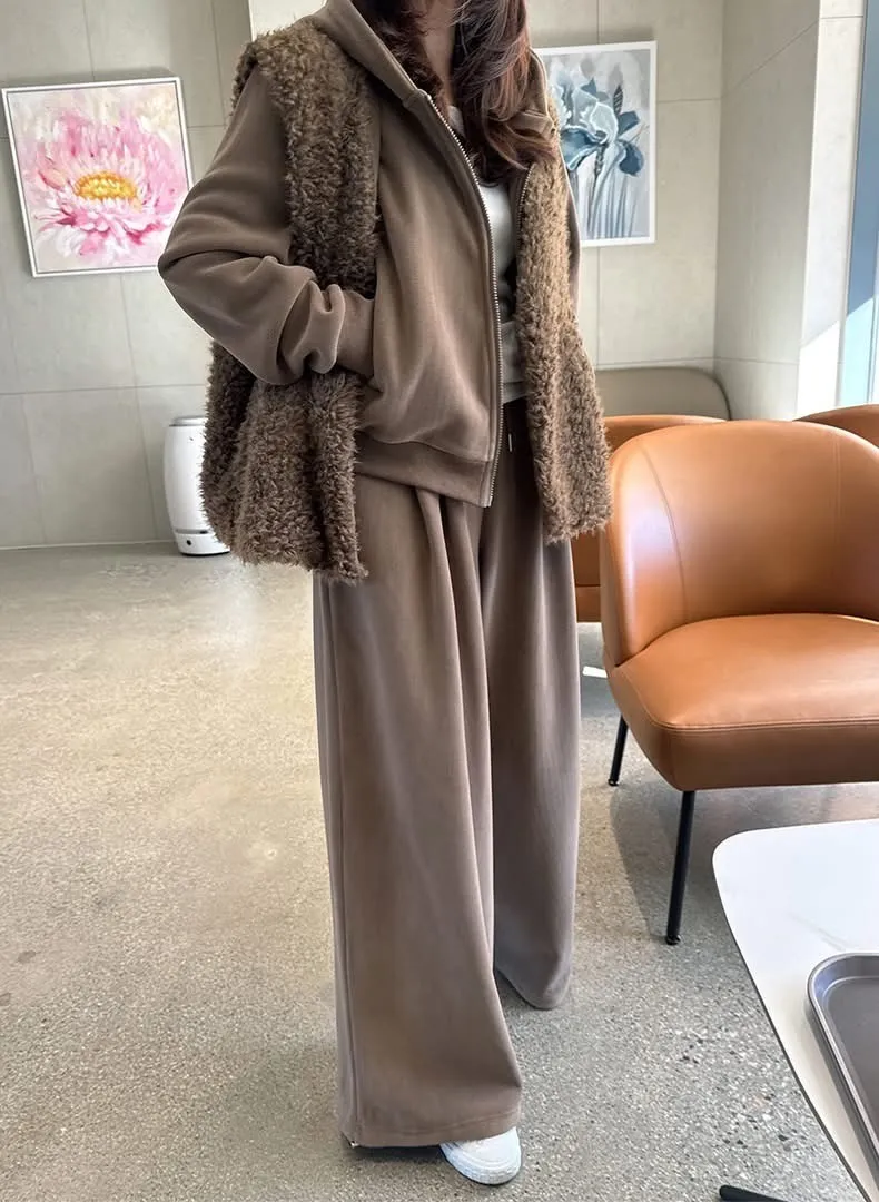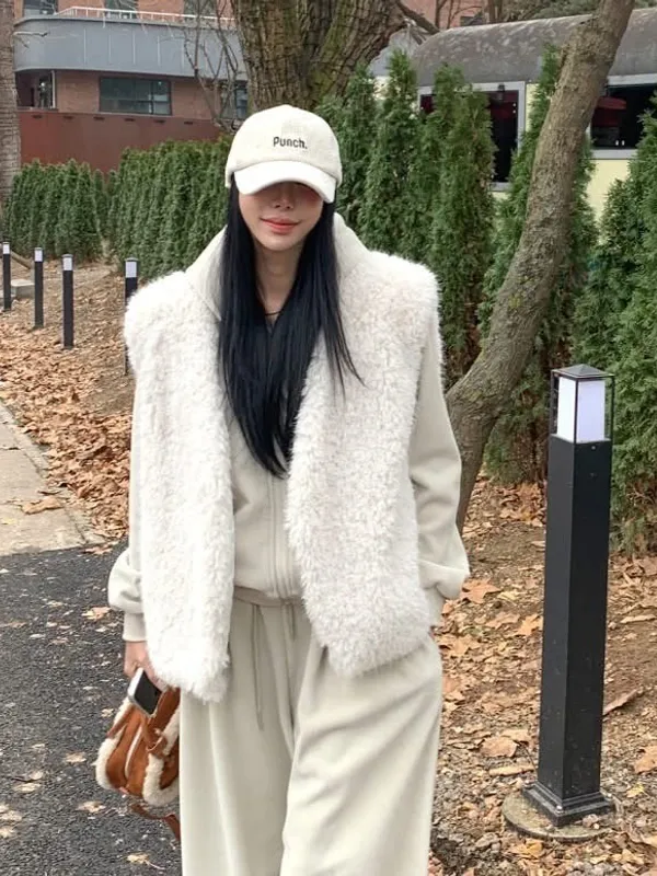 毛毛背心+帽毛套+長褲三件式SET(2色)