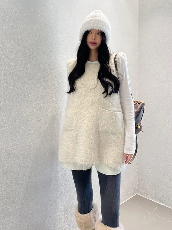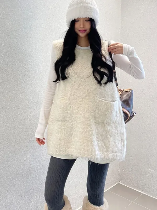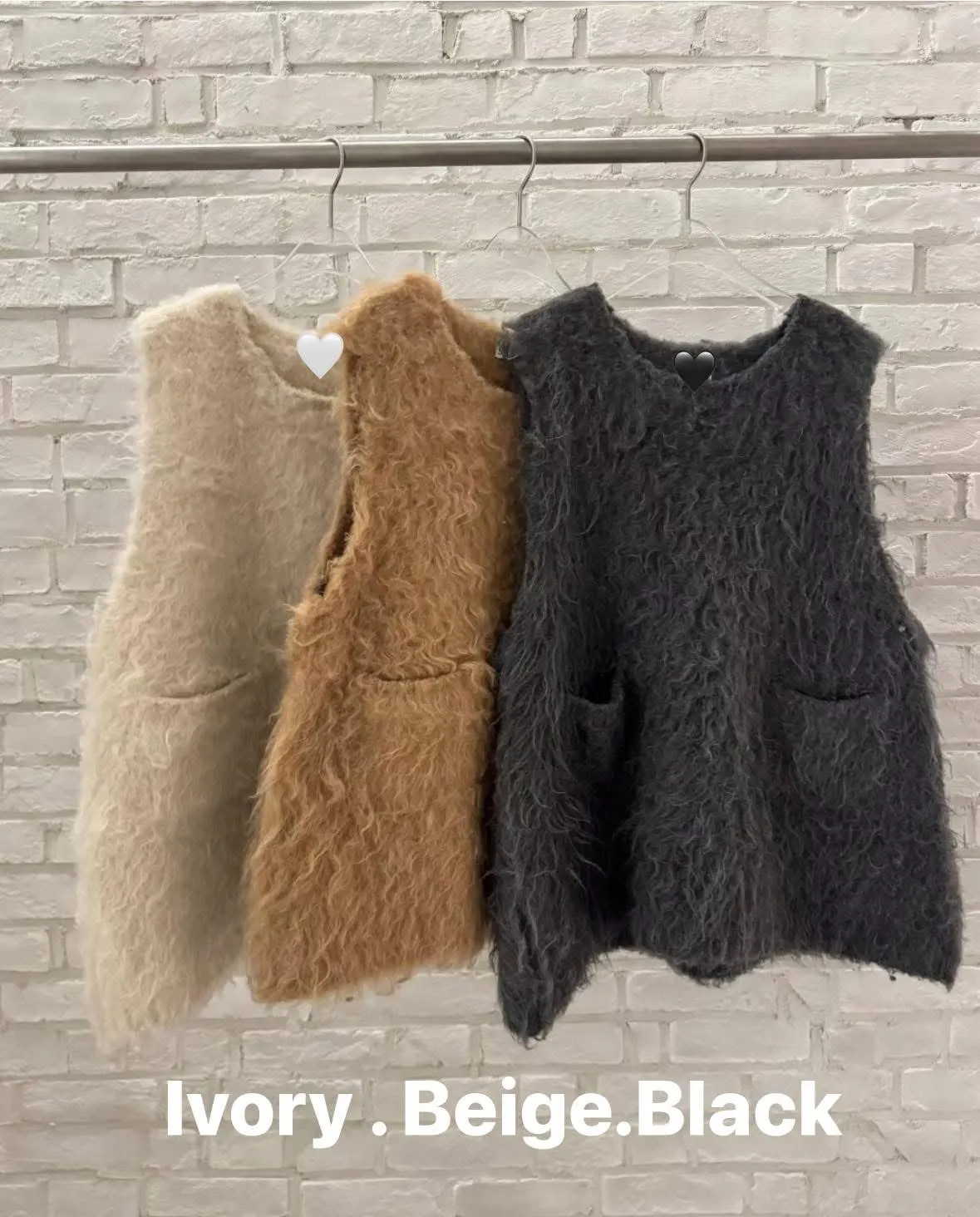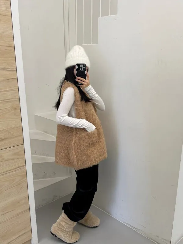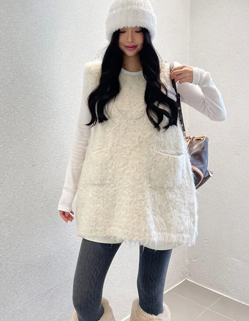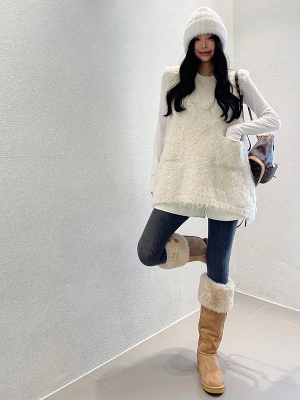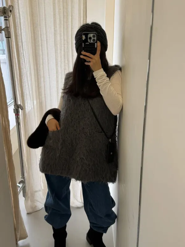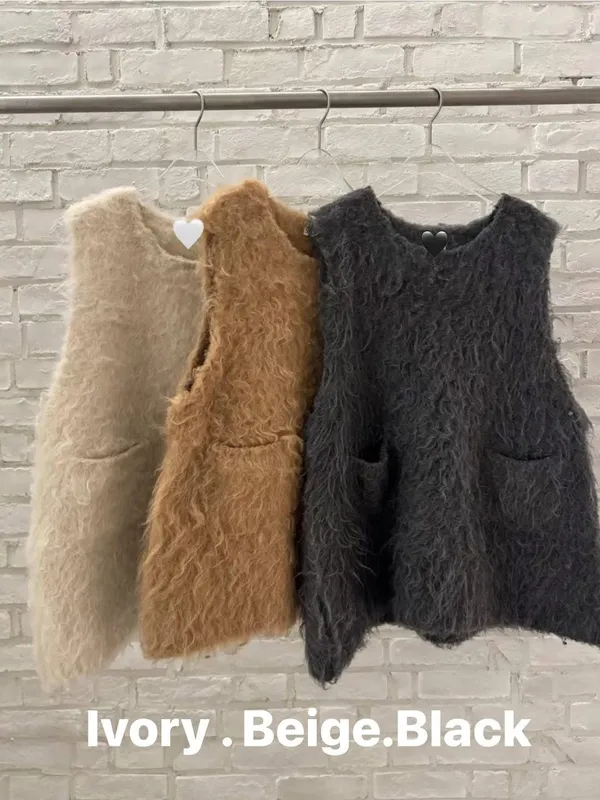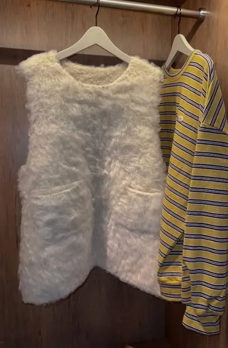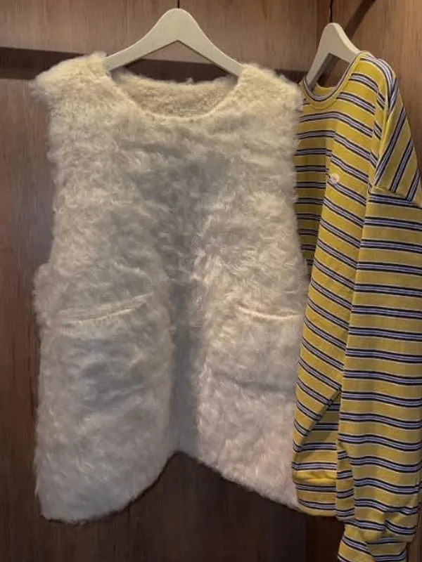 毛毛前口袋背心洋(3色)