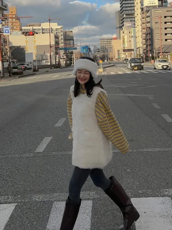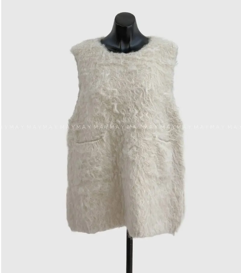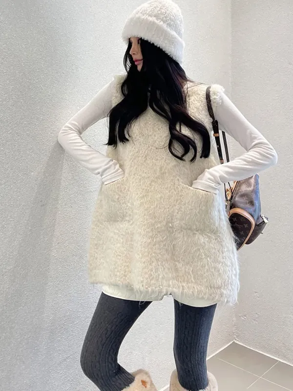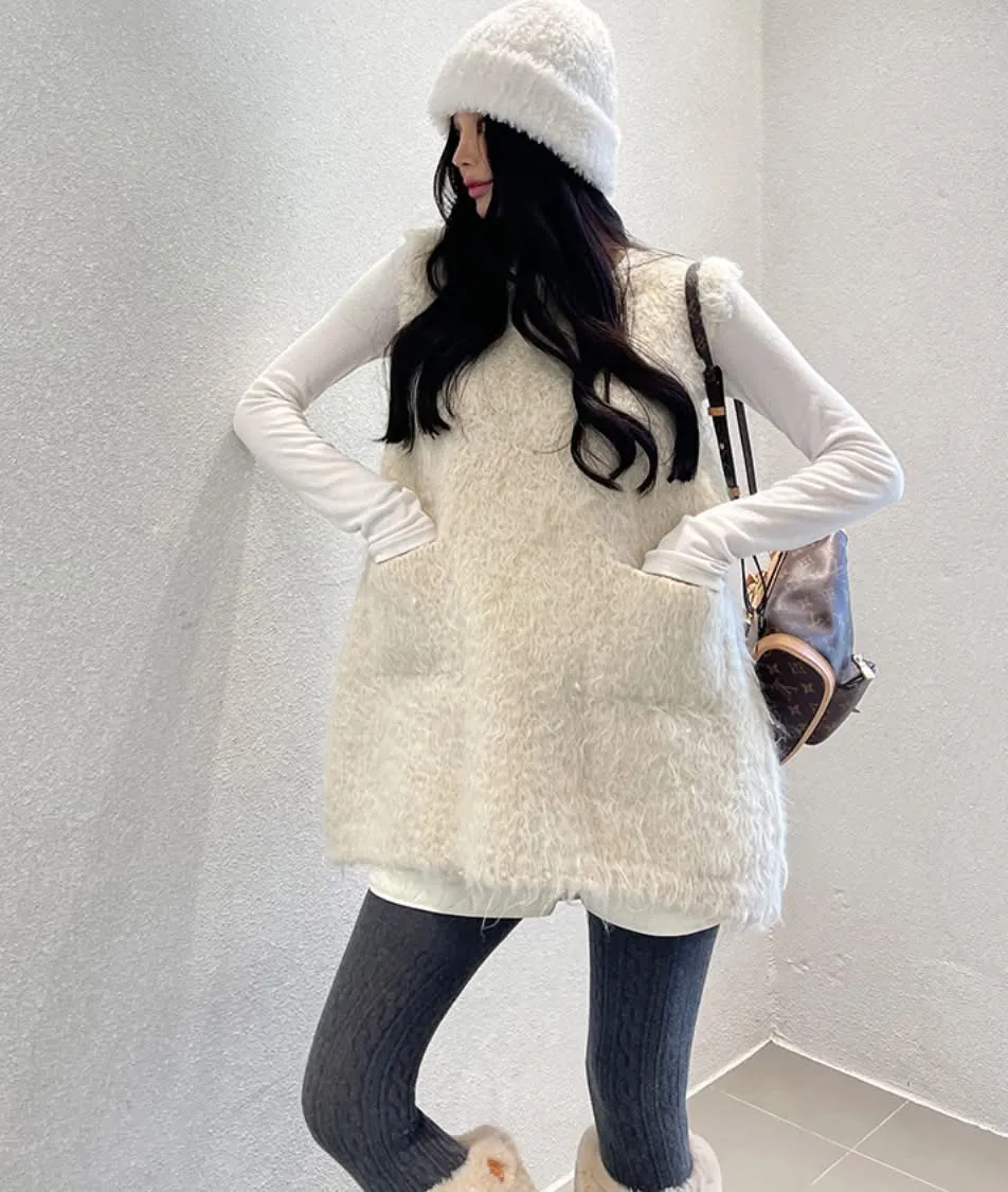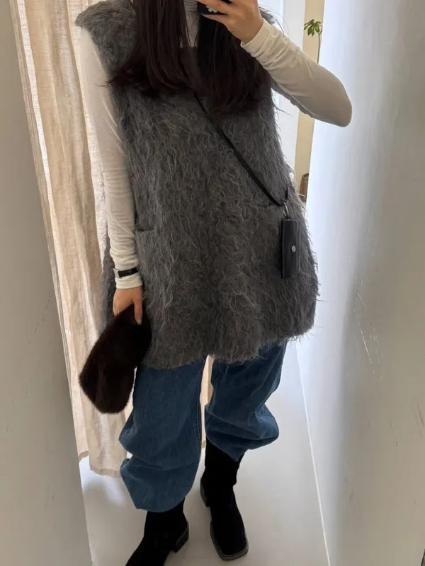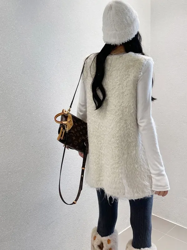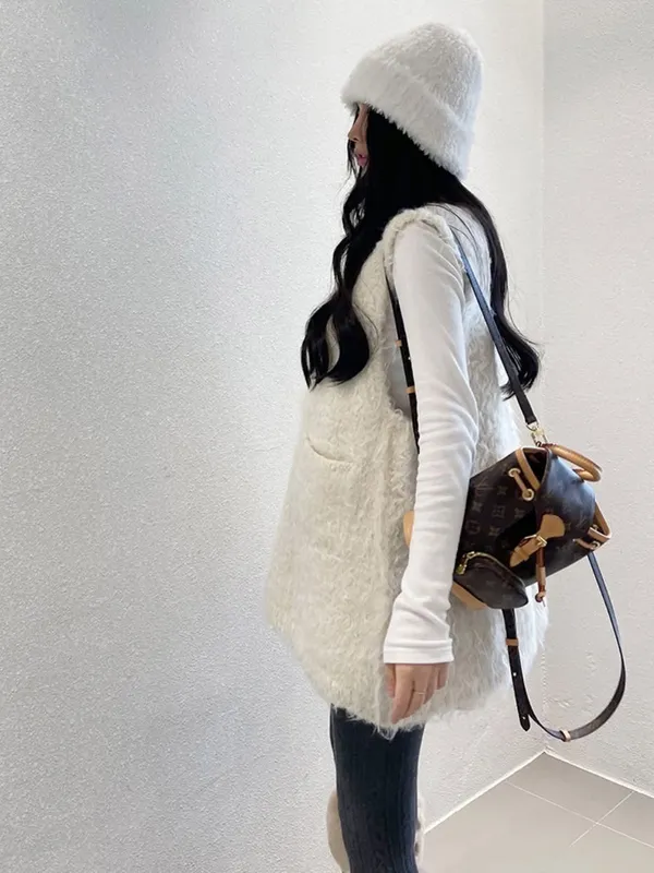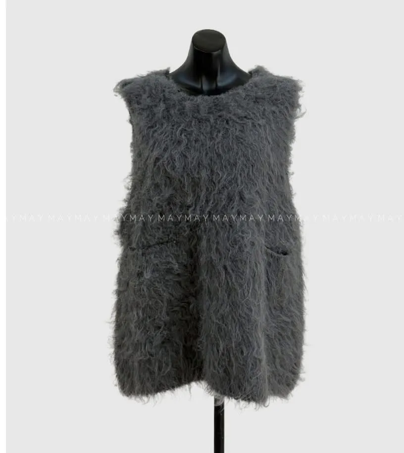 毛毛前口袋背心洋(3色)