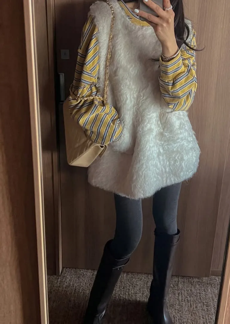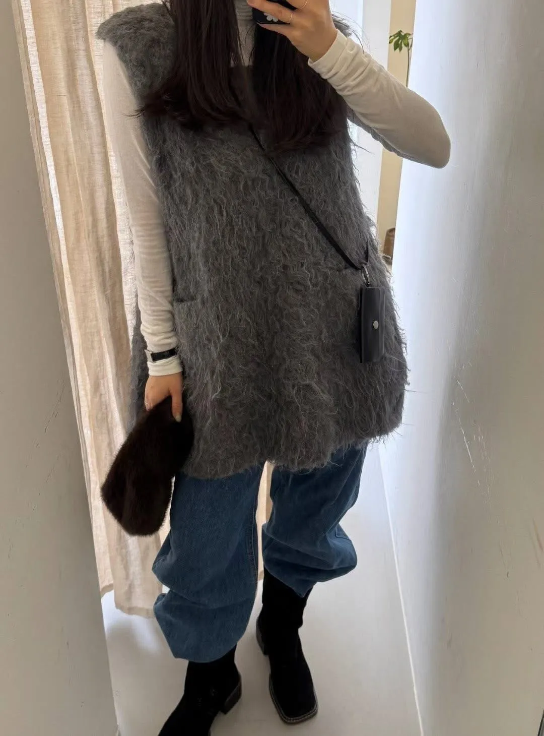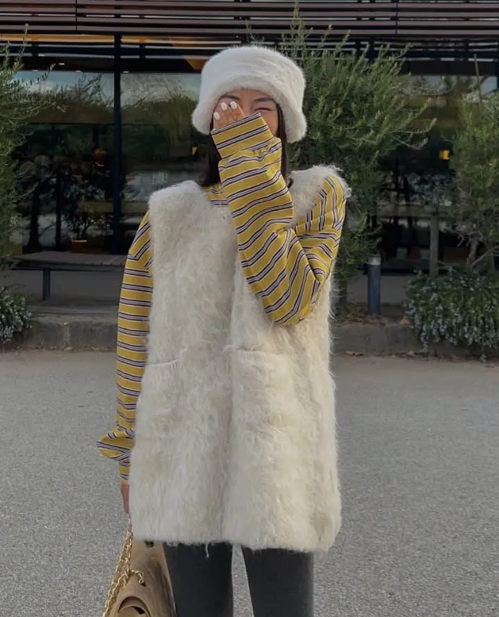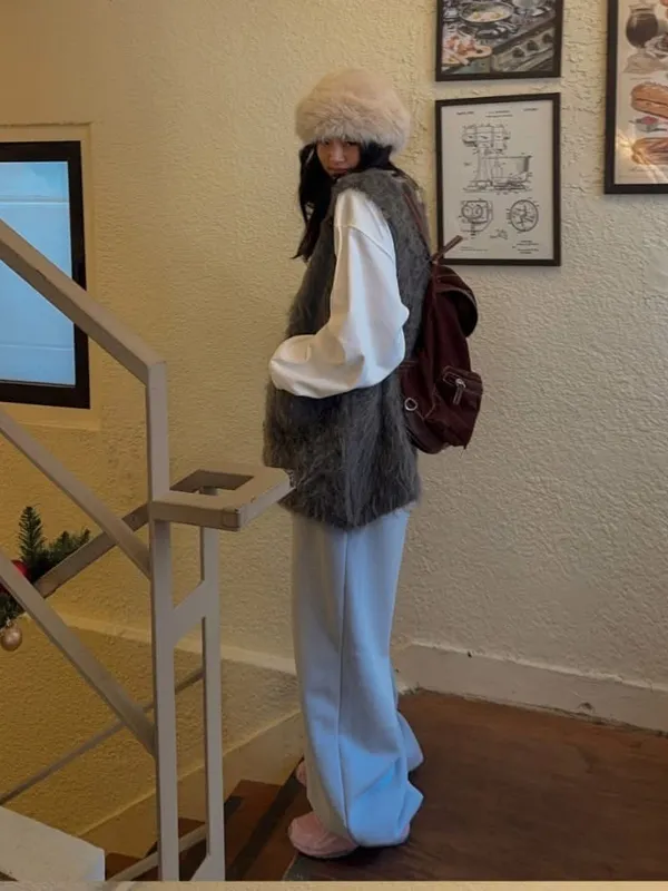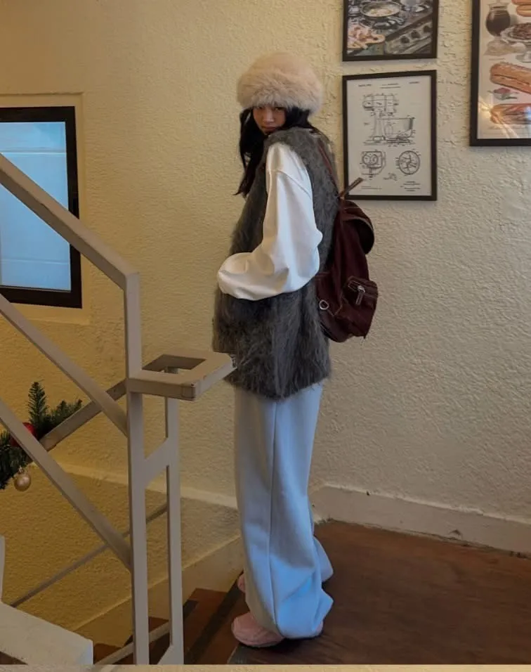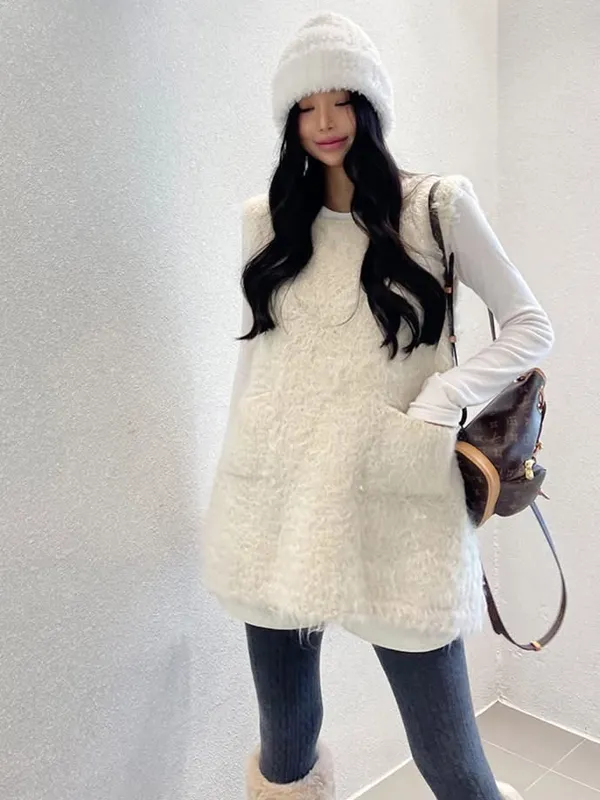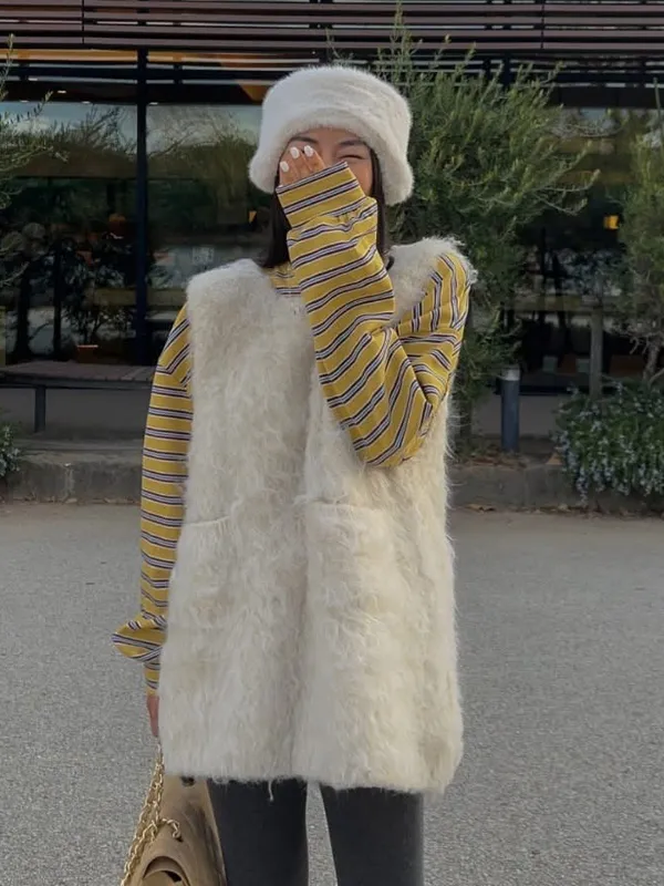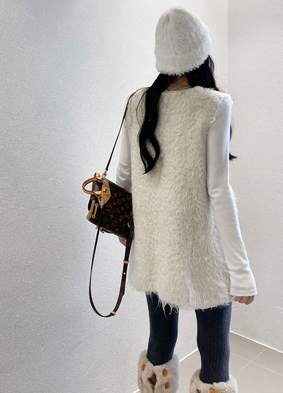 毛毛前口袋背心洋(3色)