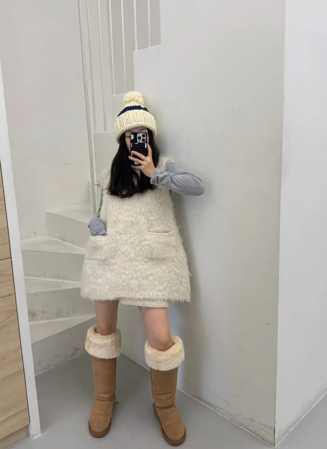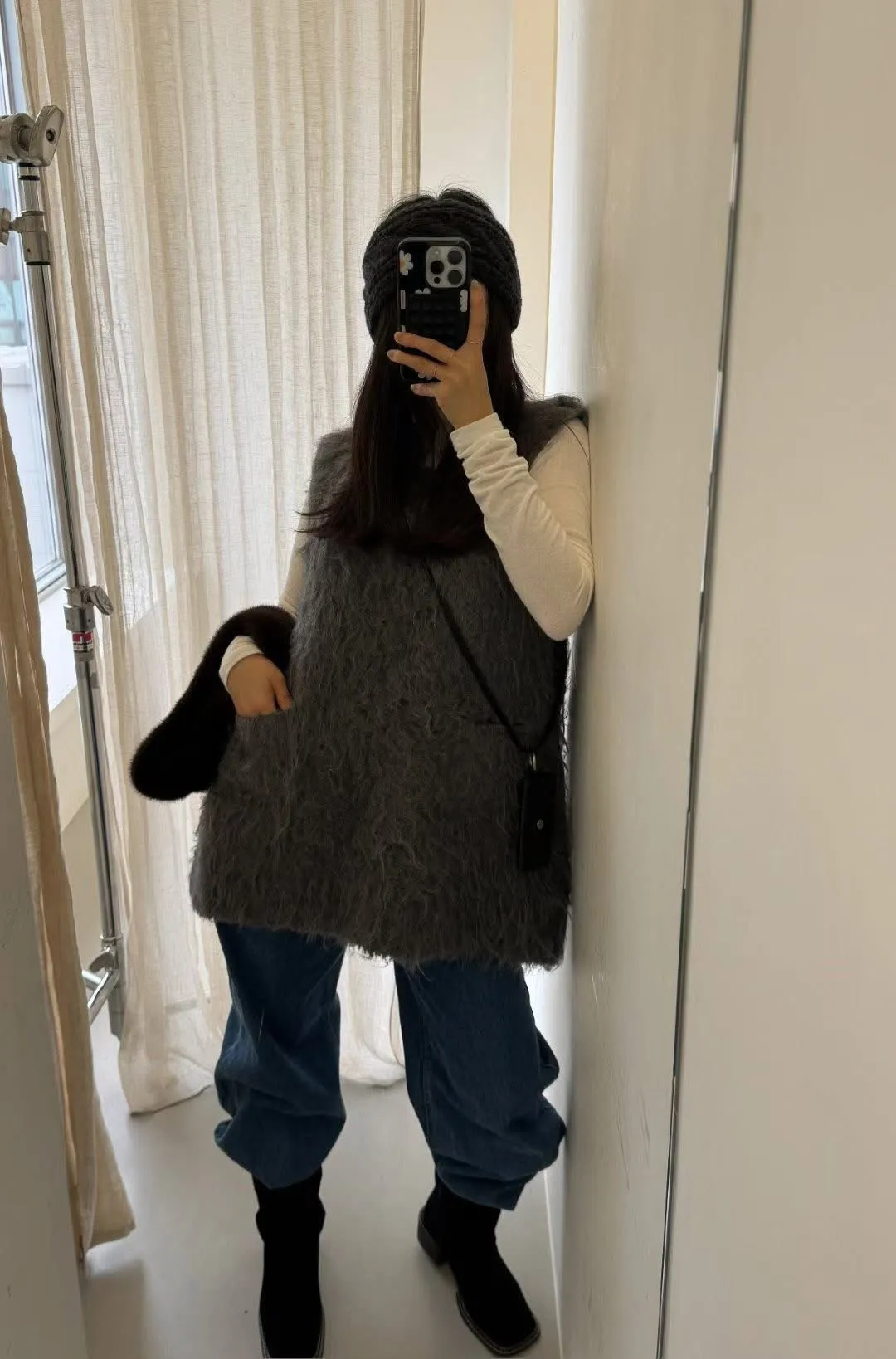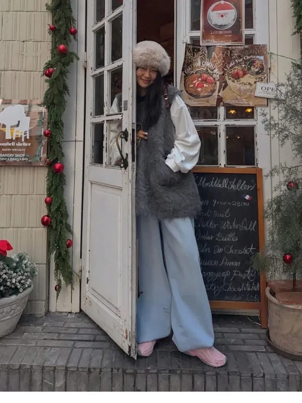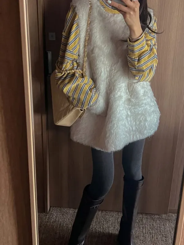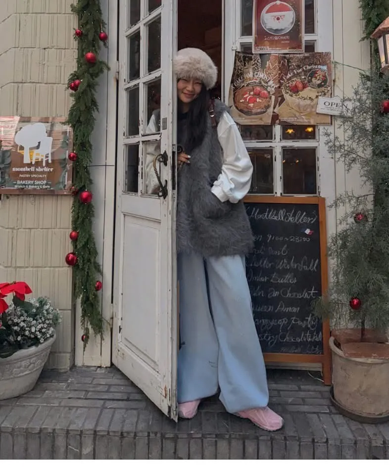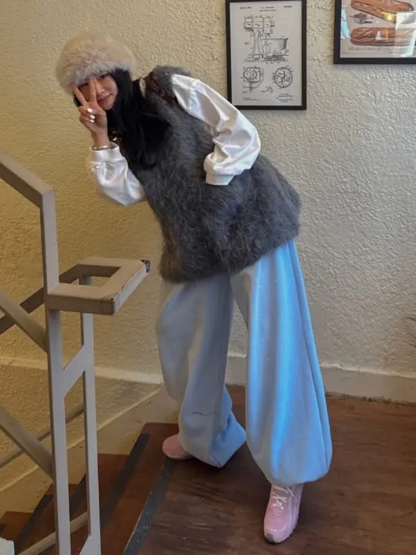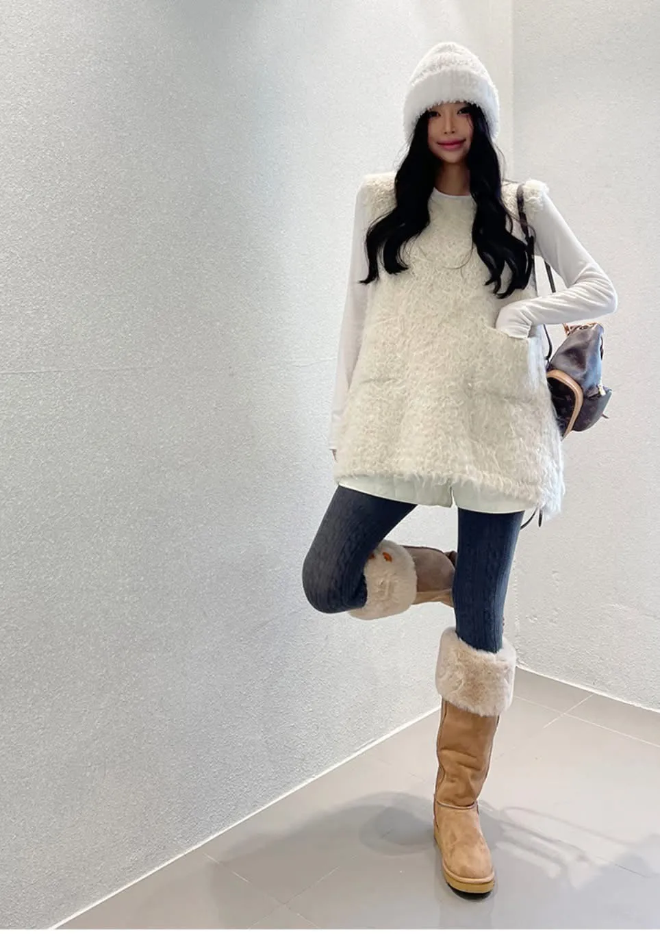 毛毛前口袋背心洋(3色)