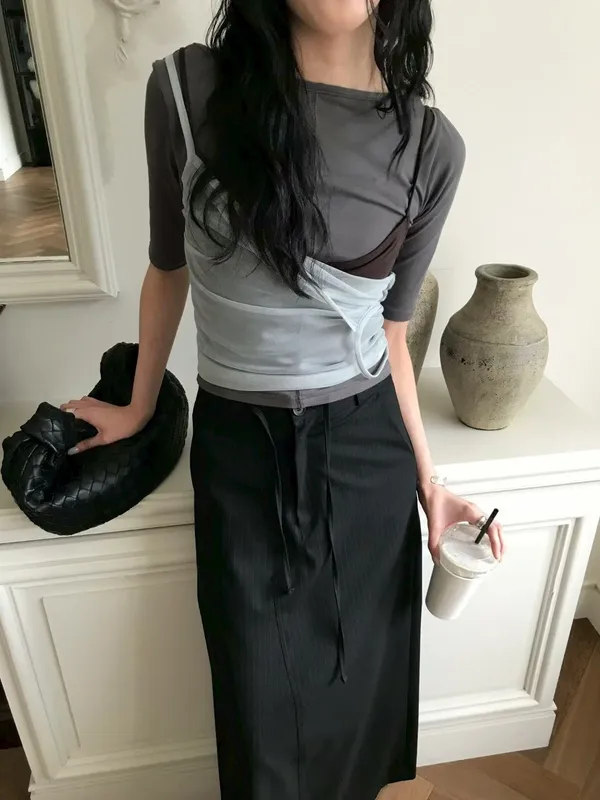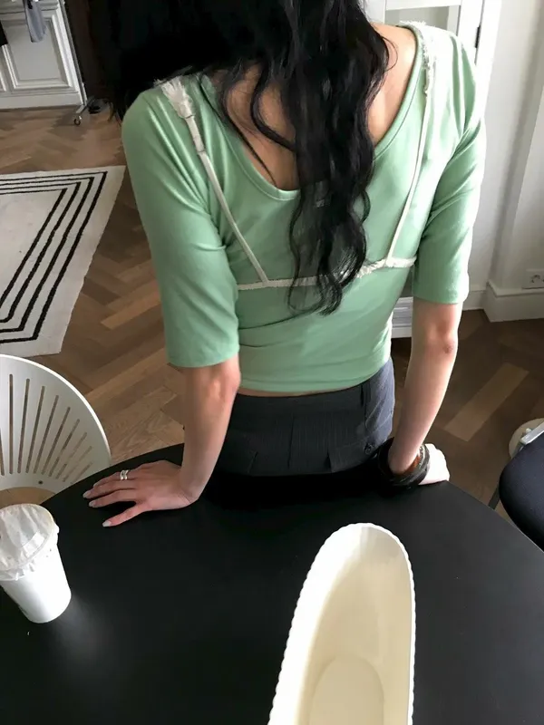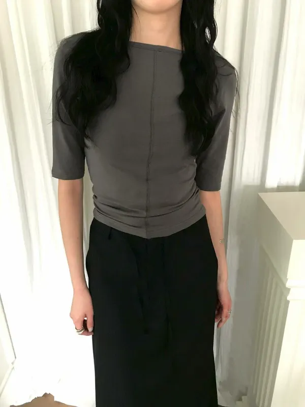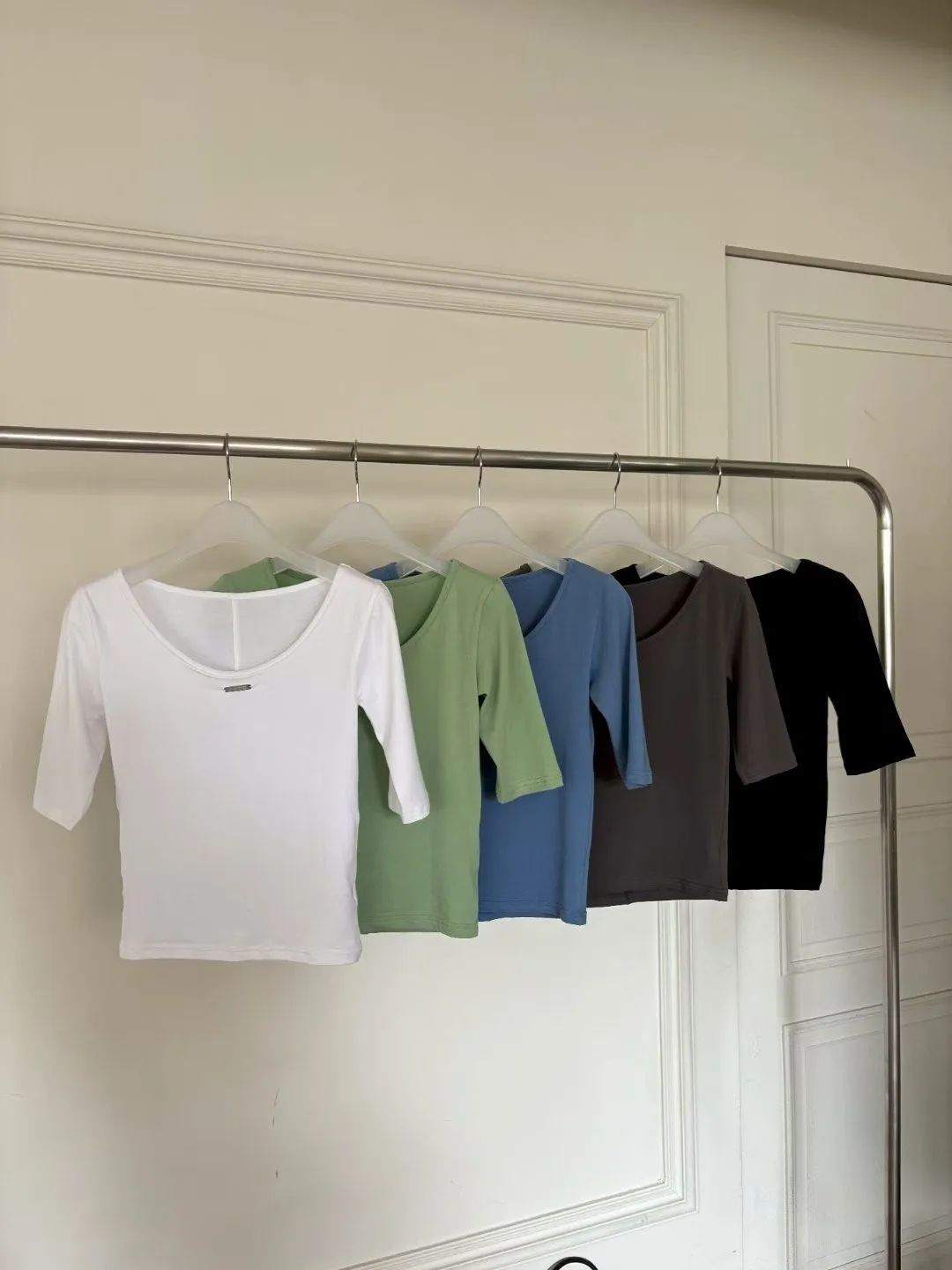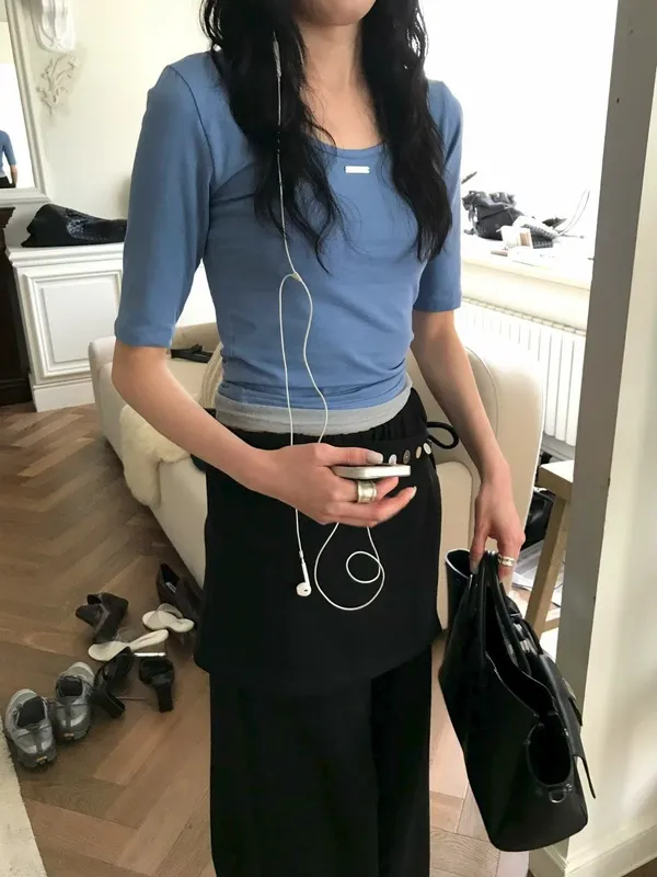 雙面可穿品牌標五分袖上衣(5色)